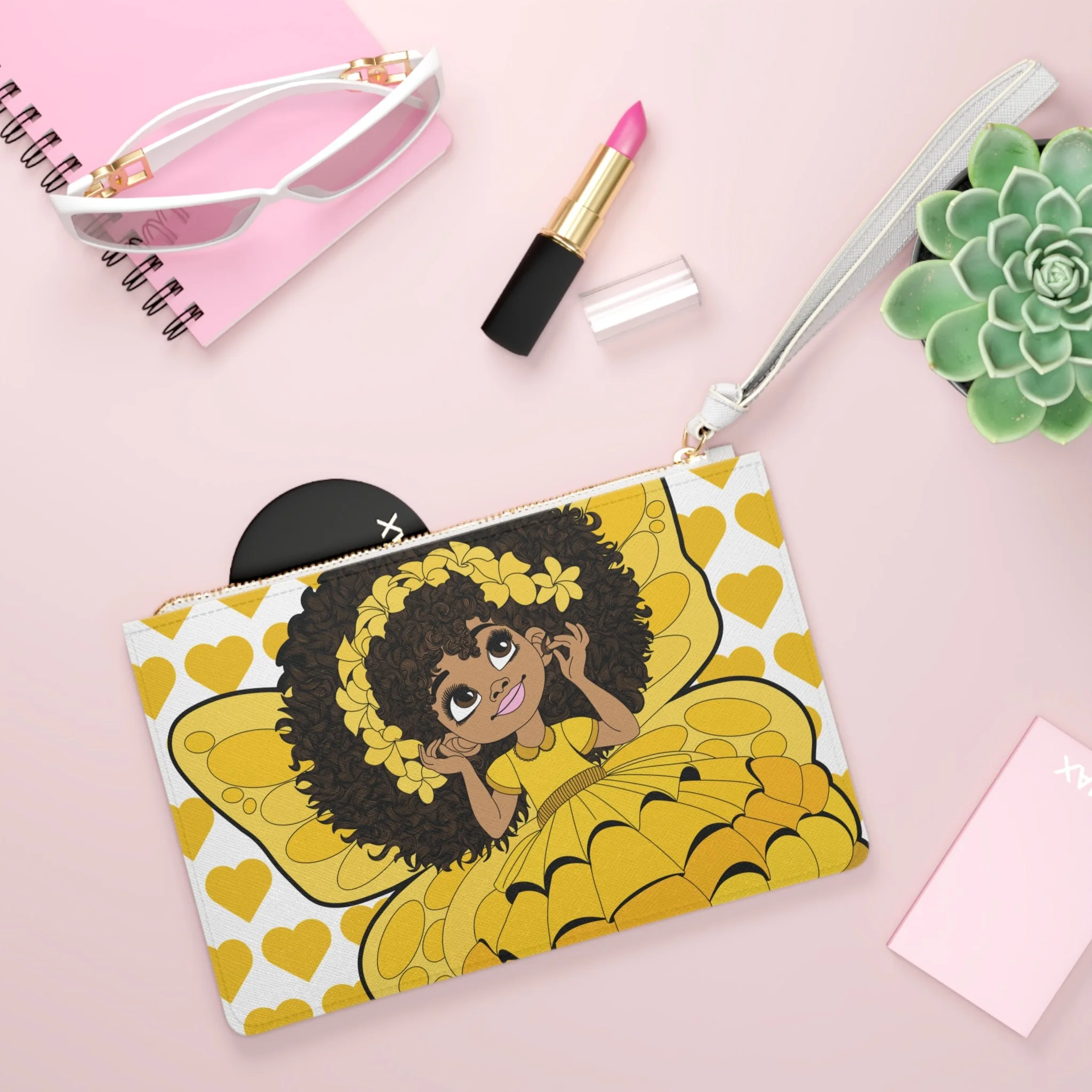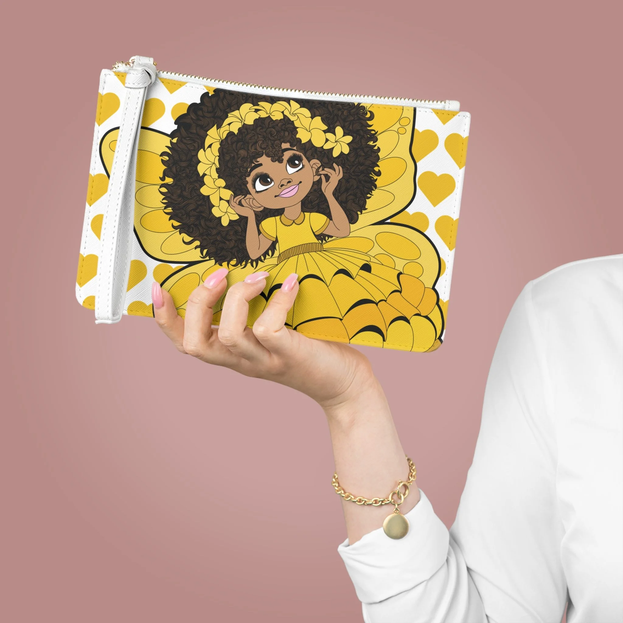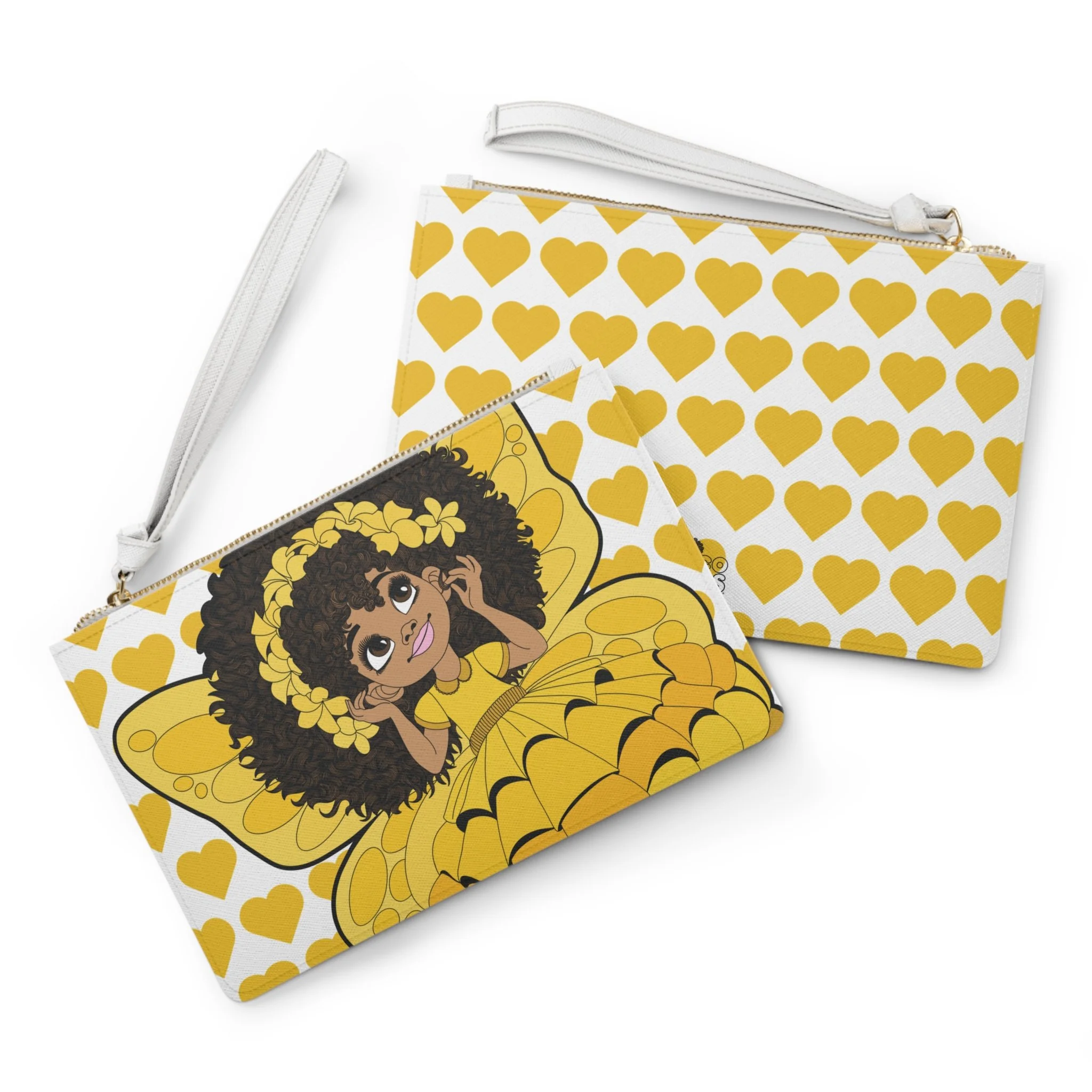 Meet the Blissful Brandie Clutch Bag, a sunshine-soaked statement piece from the Coco Pixies collection that radiates confidence, charm, and unmistakable pixie magic. Dressed in warm golden hues, Blissful Brandie features her signature curls, heart-filled backdrop, and playful pose that instantly brightens any look. This clutch blends bold illustration with everyday functionality, making it a standout accessory for kids and grown-ups alike.