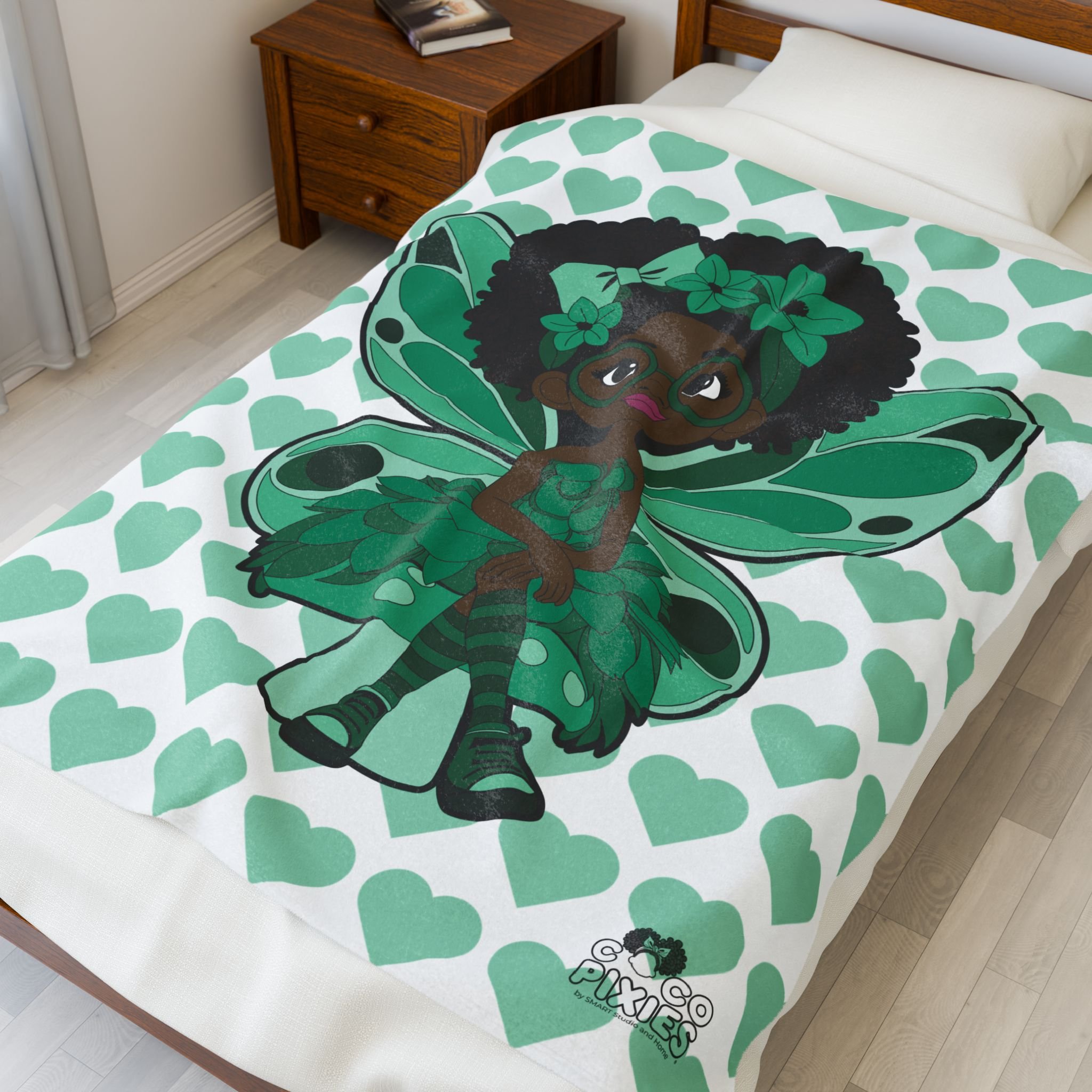 Brilliant Bailey Pixie Velveteen Plush Blanket - Coco Pixies Signature Heart Pattern Throw, 50" x 60"