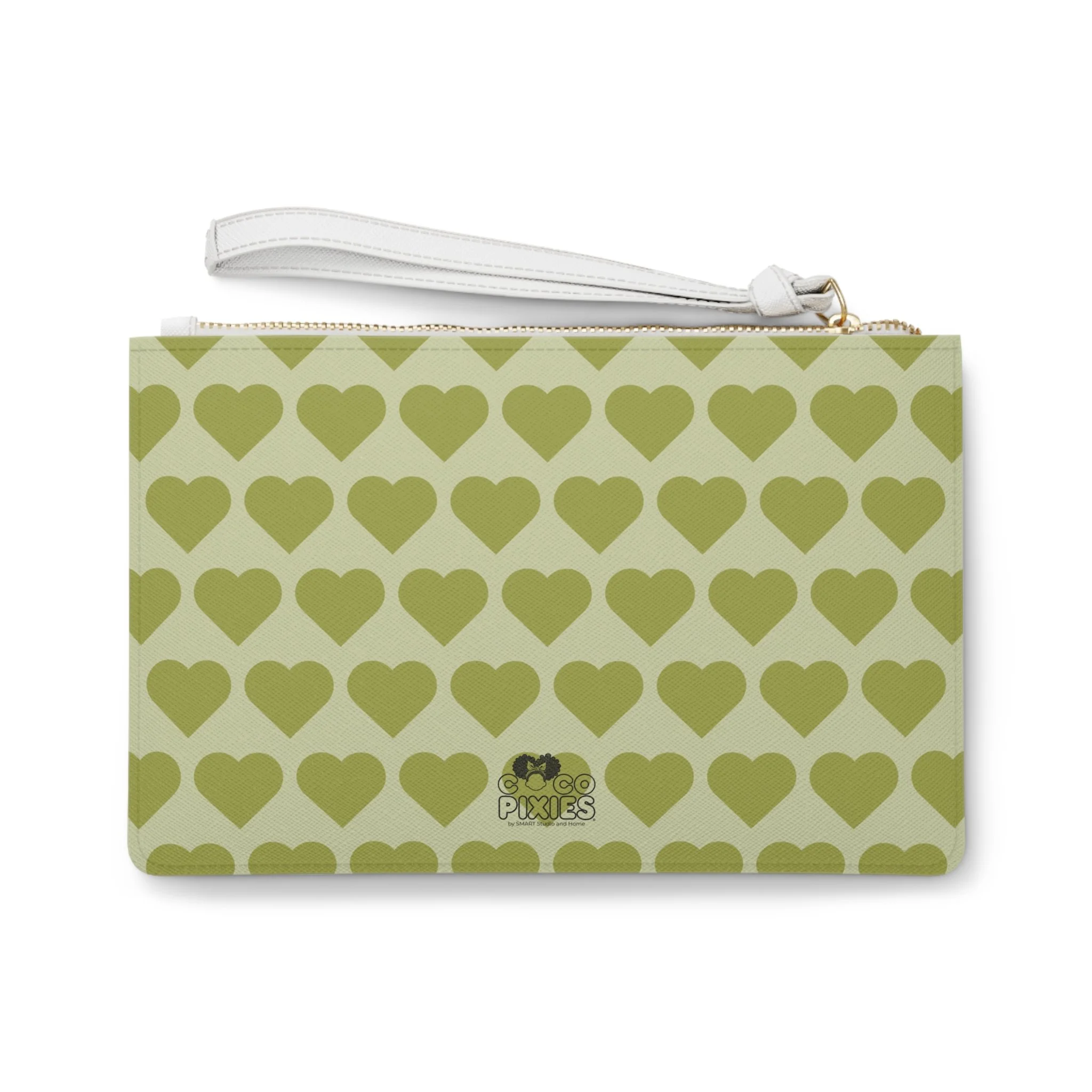 Cheerful Charlotte Pixie Clutch Bag - Coco Pixies Soft Green Signature Heart Pattern Wristlet With Zipper