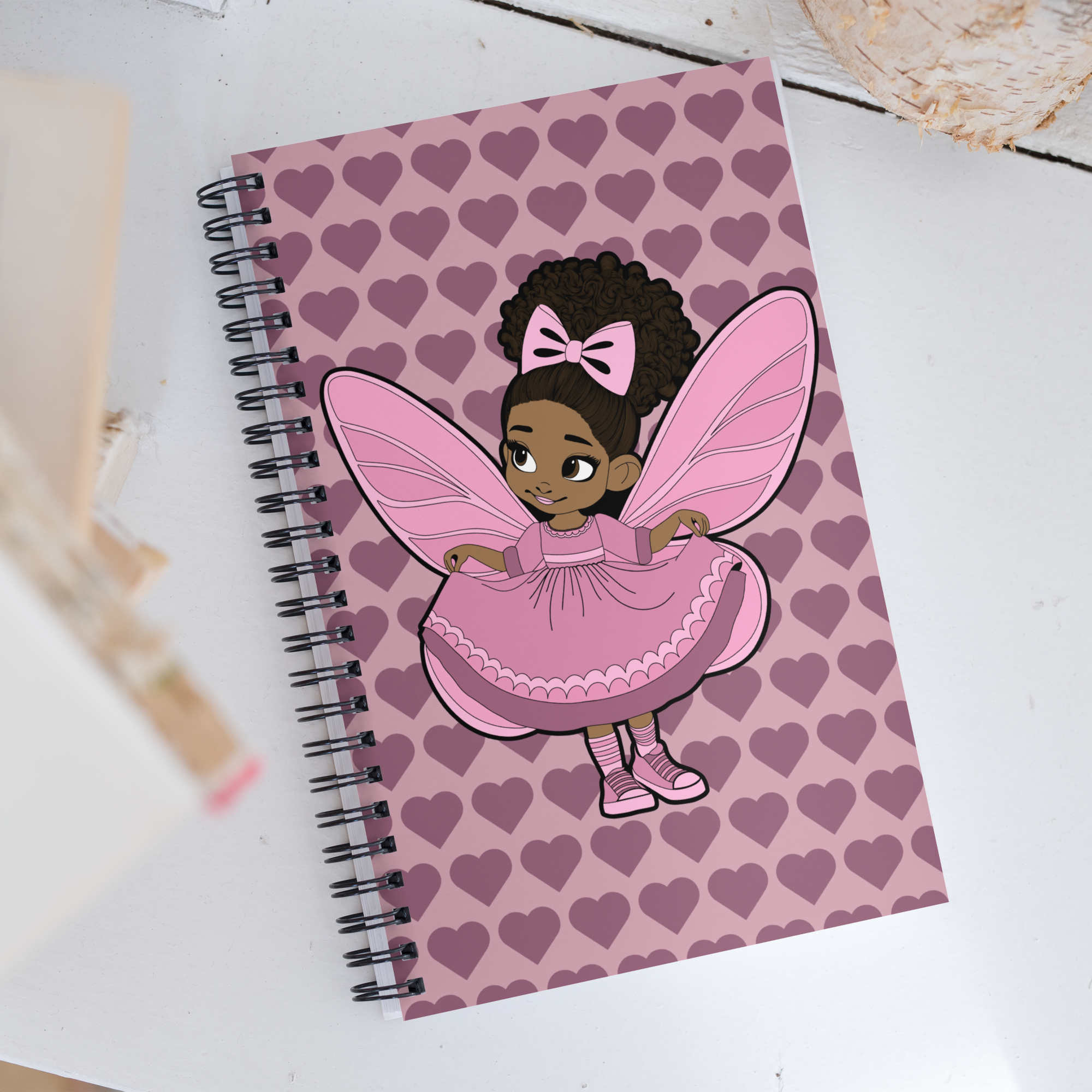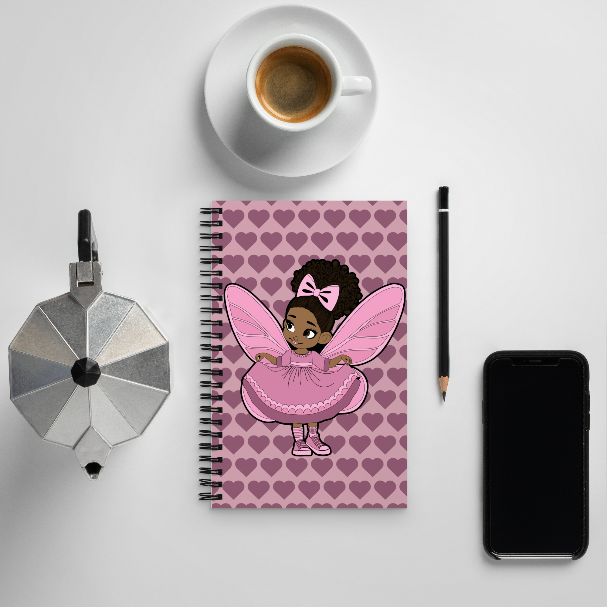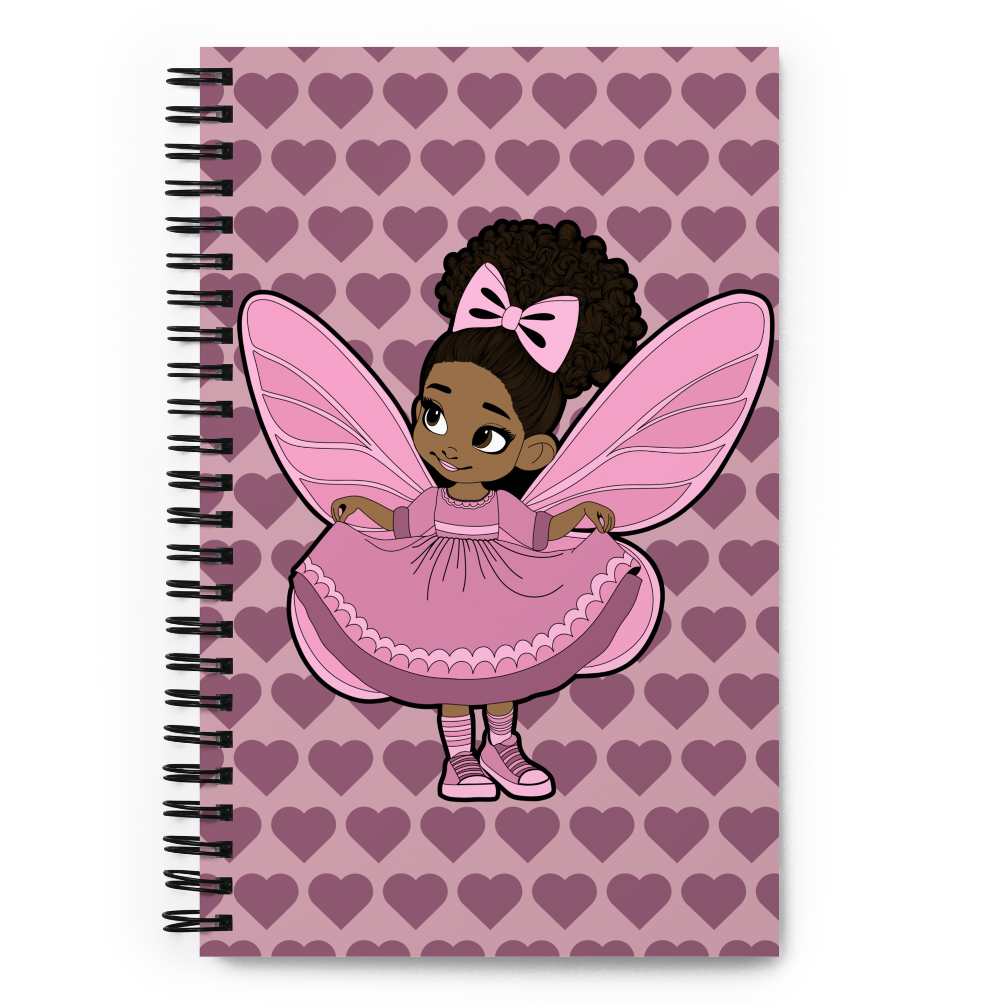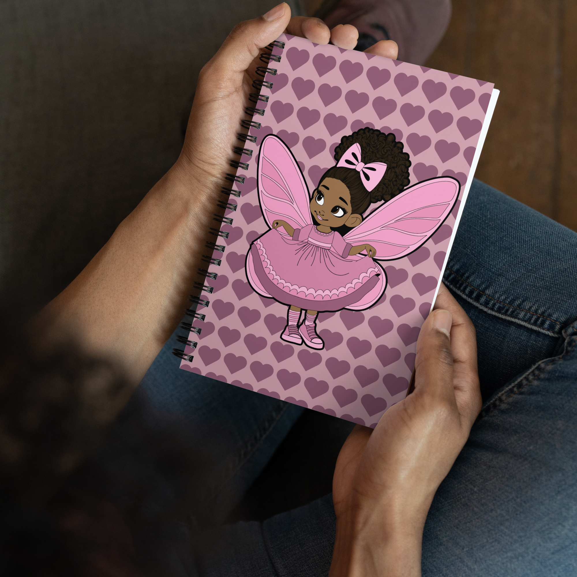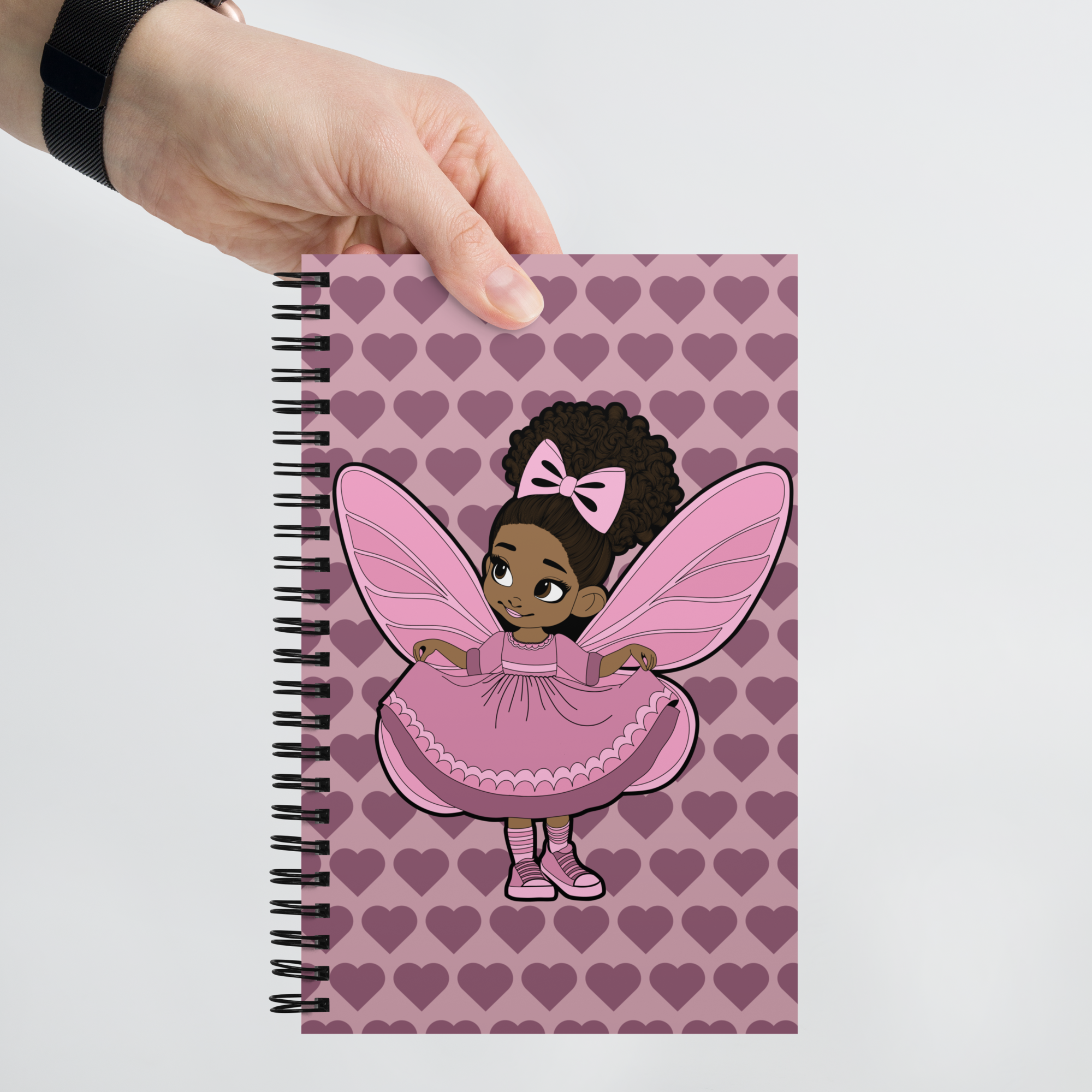 Darling Daphne from Coco Pixies brings sweet confidence and polished charm to every page of this beautifully designed spiral notebook. Wrapped in a soft blush background with a signature heart pattern, Darling Daphne stands poised in her flowing pink dress, oversized bow, and delicate wings—capturing a look that’s both graceful and strong. This notebook blends personality with purpose, making it a standout addition to any desk, backpack, or bedside table.