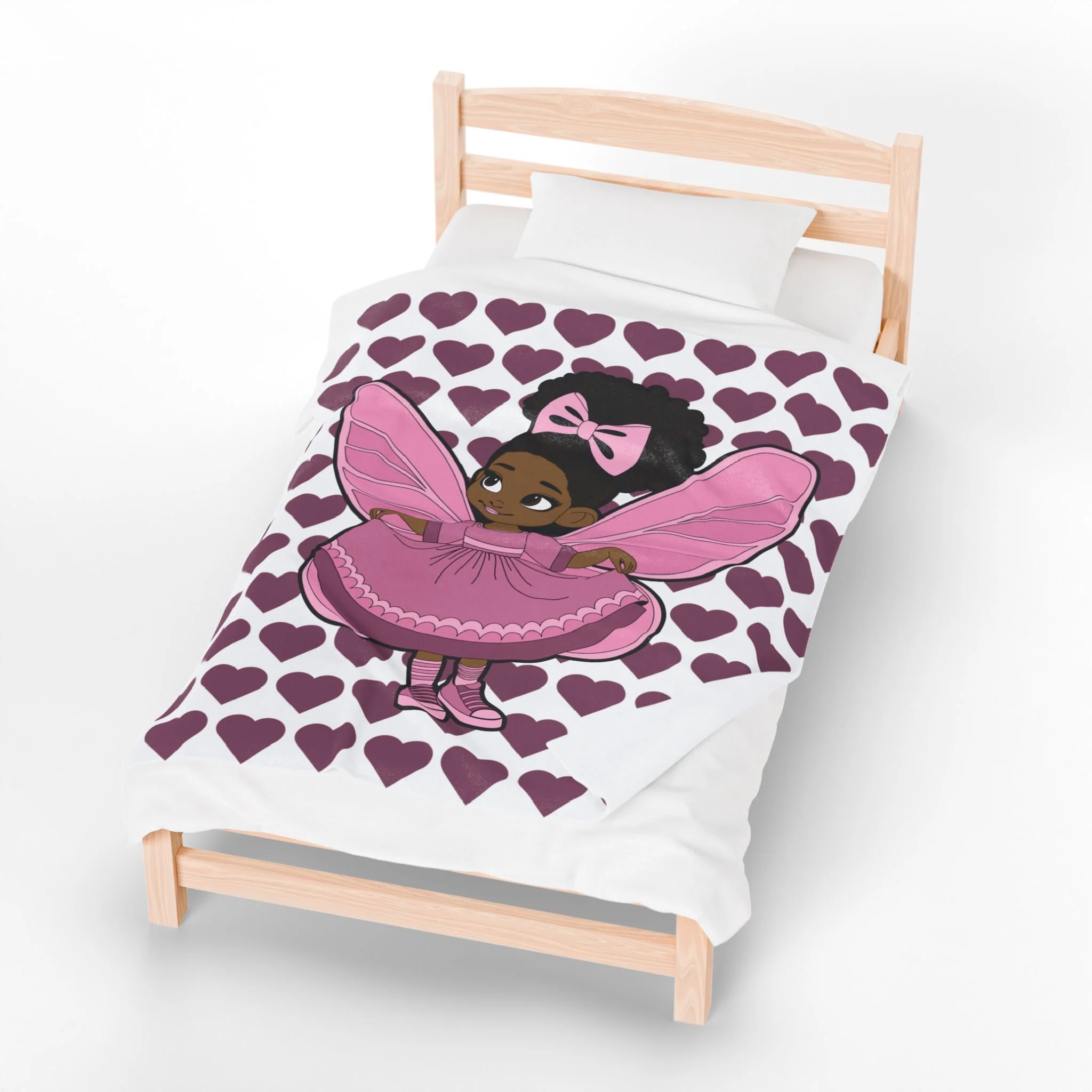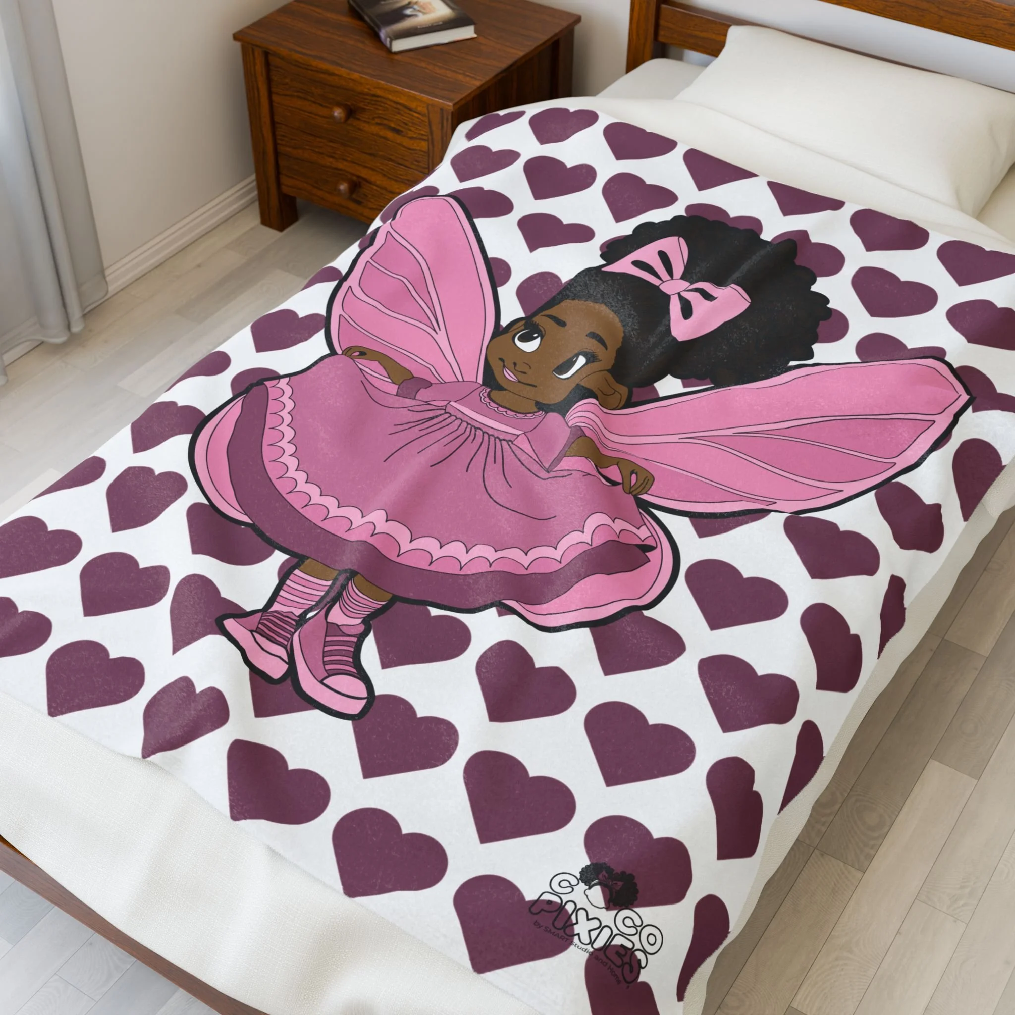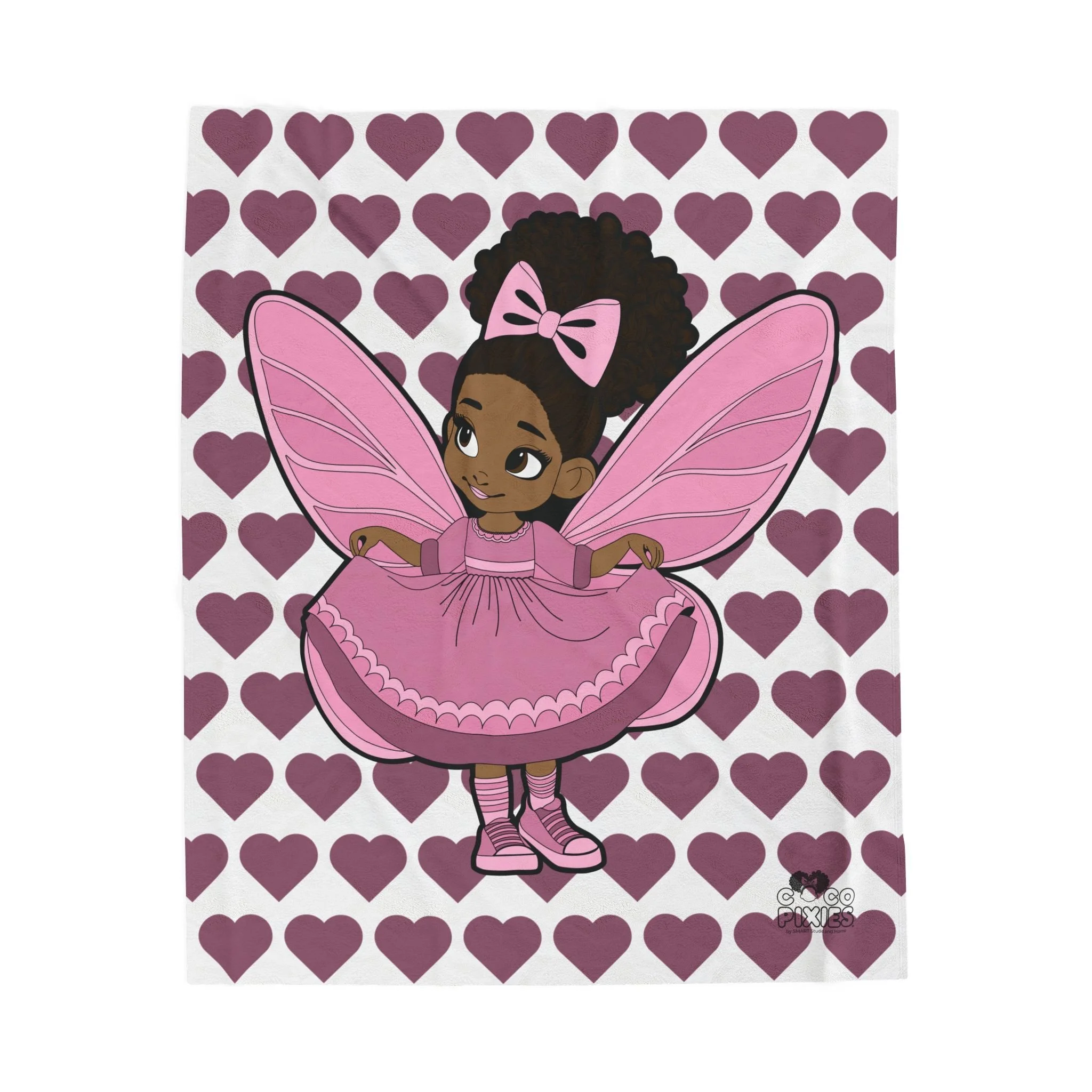 Darling Daphne Pixie Velveteen Plush Blanket -Coco Pixies Signature Heart Pattern Throw, 50" x 60"