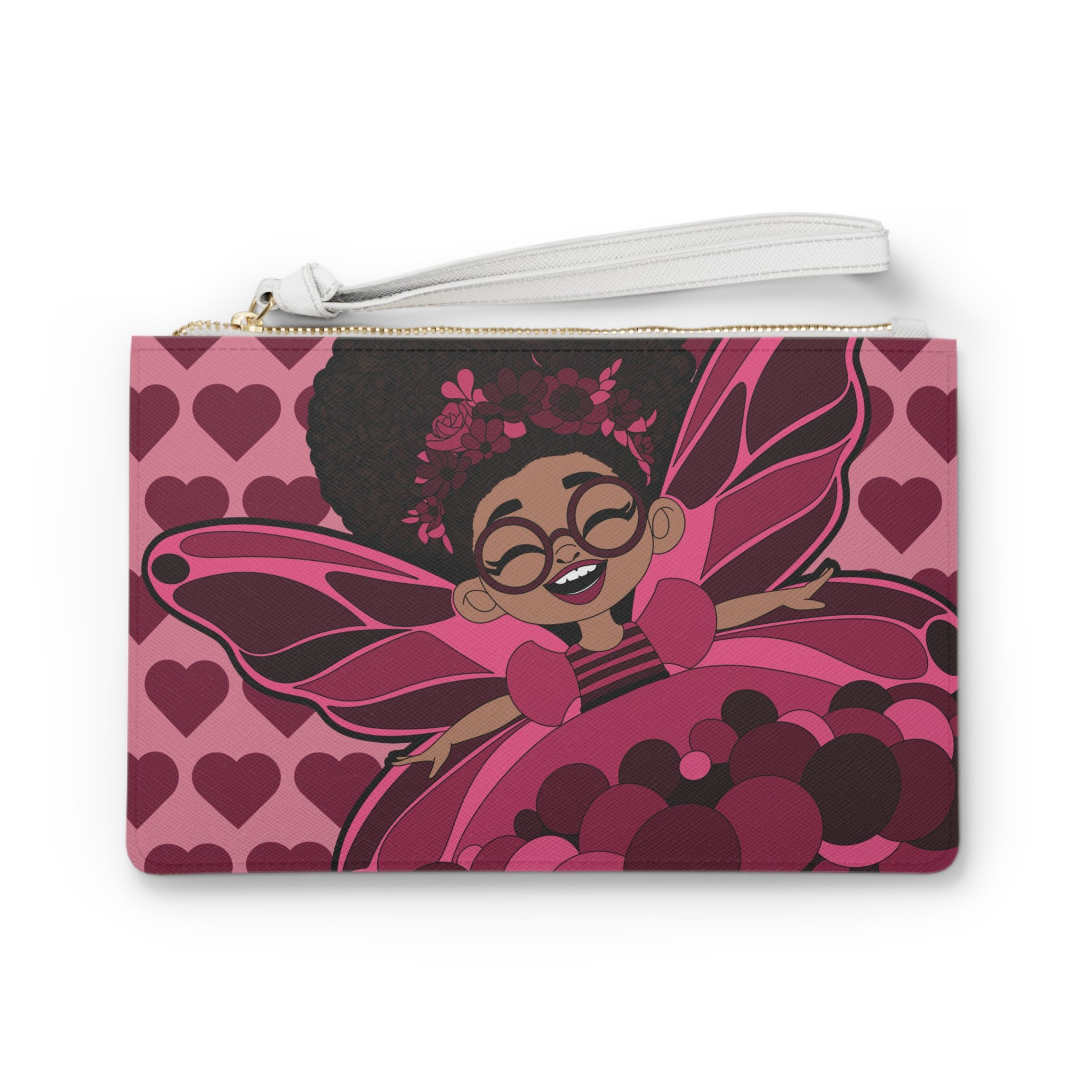 Say hello to the Delightful Daisy Clutch Bag, a playful statement piece from the Coco Pixies collection that radiates confidence, color, and charm. Featuring Delightful Daisy soaring across a pink heart-filled background, this clutch captures movement, personality, and a big, carefree smile that instantly stands out. Her bold pink wings, floral crown, and expressive style make this accessory feel lively, stylish, and full of character.