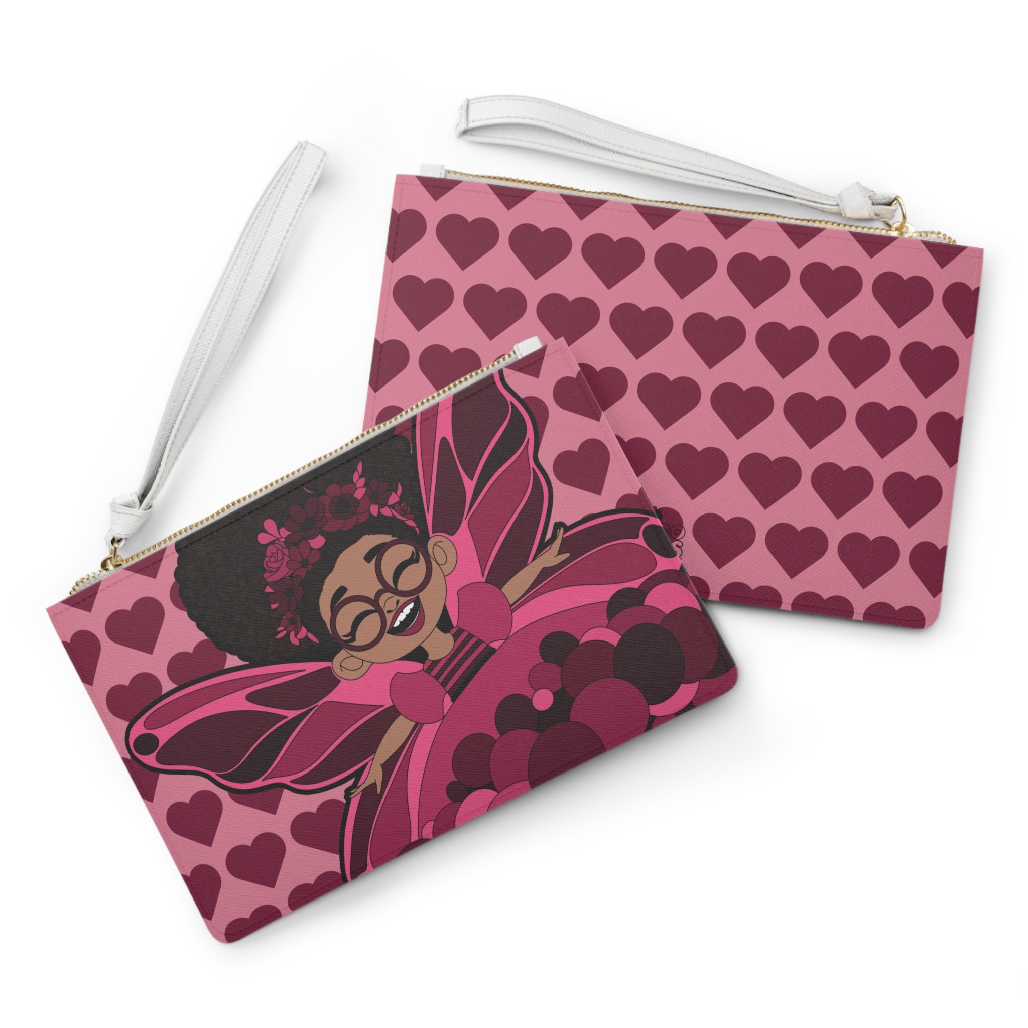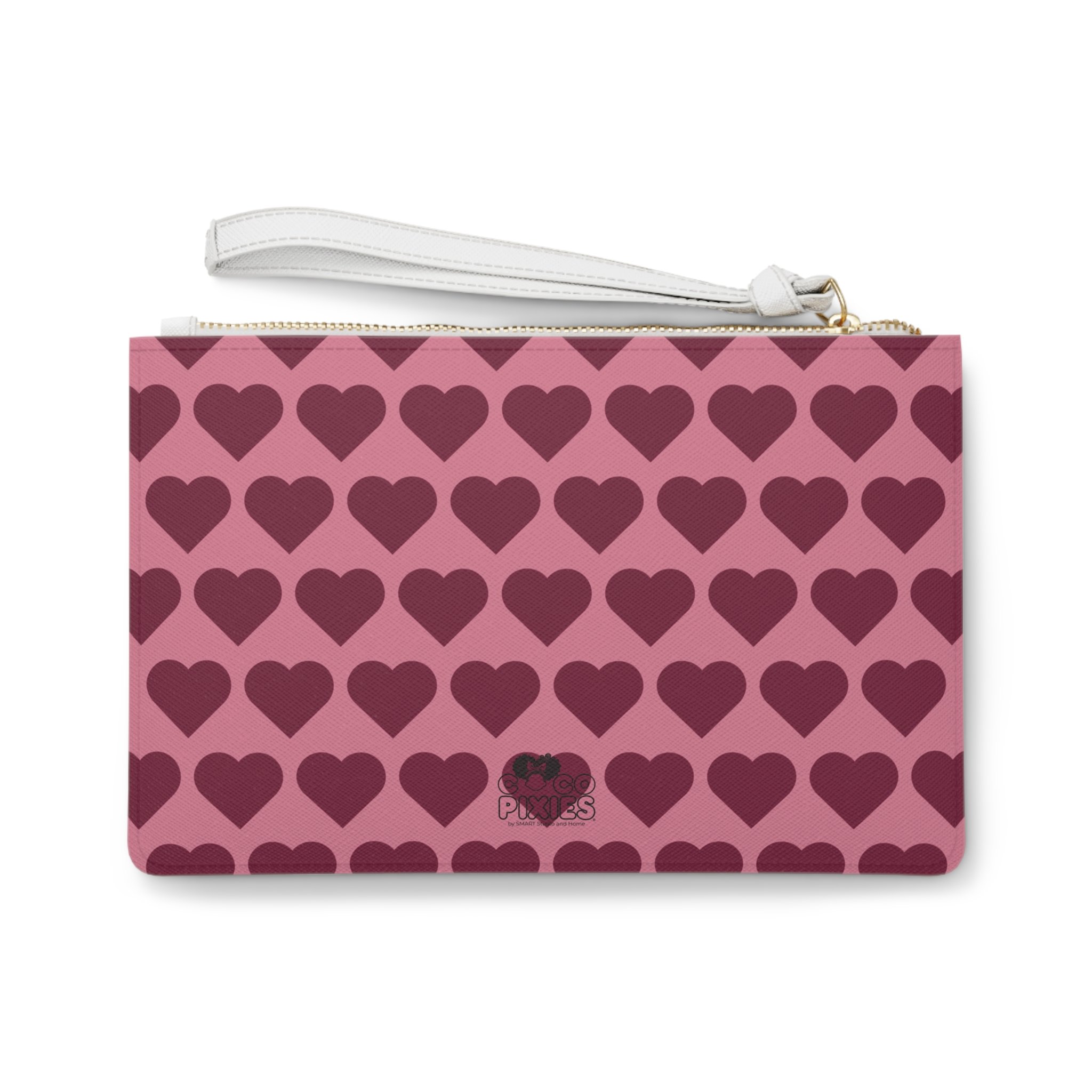 Delightful Daisy Pixie Clutch Bag - Coco Pixies Berry Pink Signature Heart Pattern Wristlet With Zipper