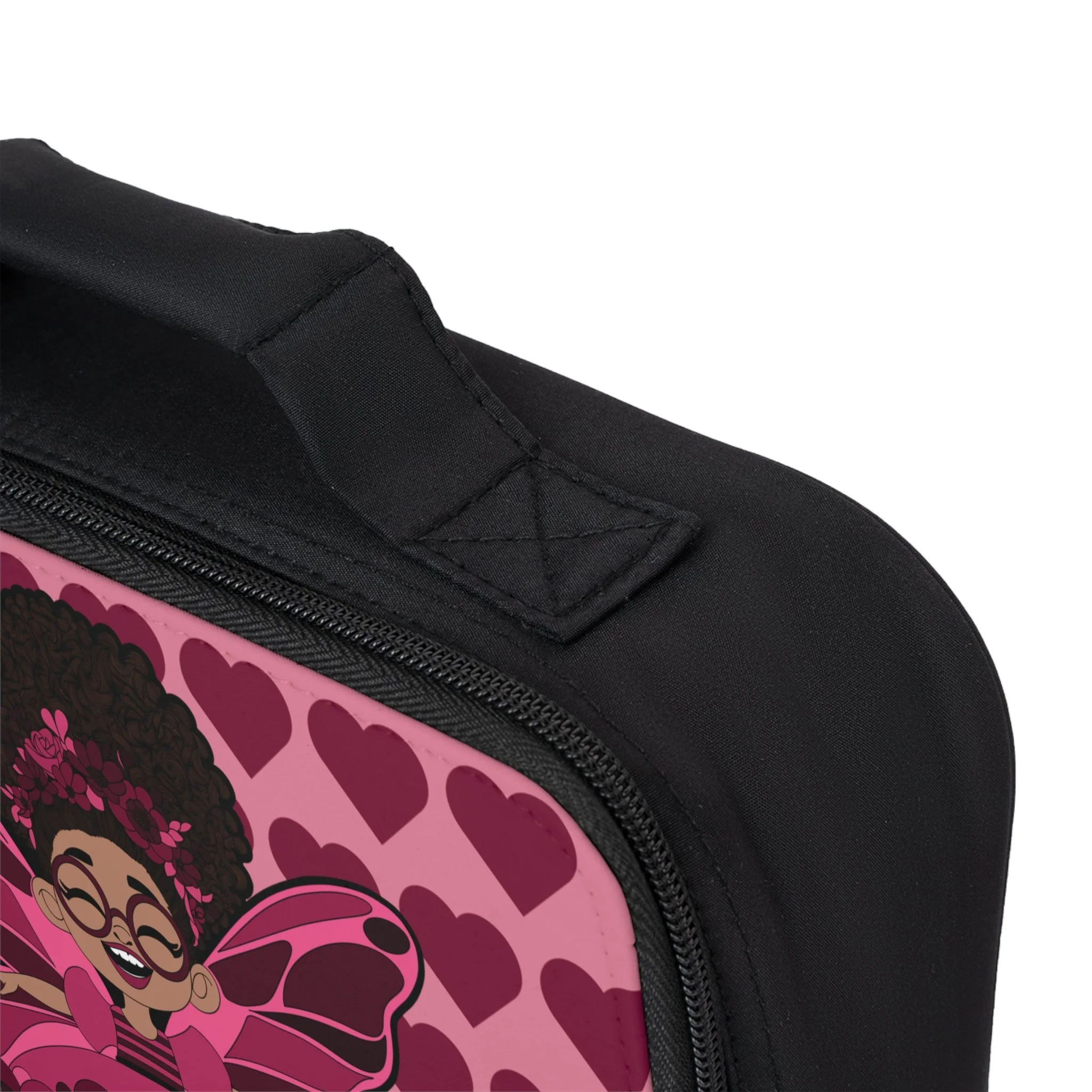 Delightful Daisy brings a burst of personality and pink power to this Coco Pixies lunch bag, blending bold color, charming detail, and everyday practicality. Featuring Daisy’s signature afro puffs, rosy wings, and a heart-filled backdrop, this insulated bag is designed to stand out while keeping snacks and meals neatly stored. The structured clutch-style silhouette makes it easy to carry, while the cheerful artwork turns lunchtime into a statement moment.