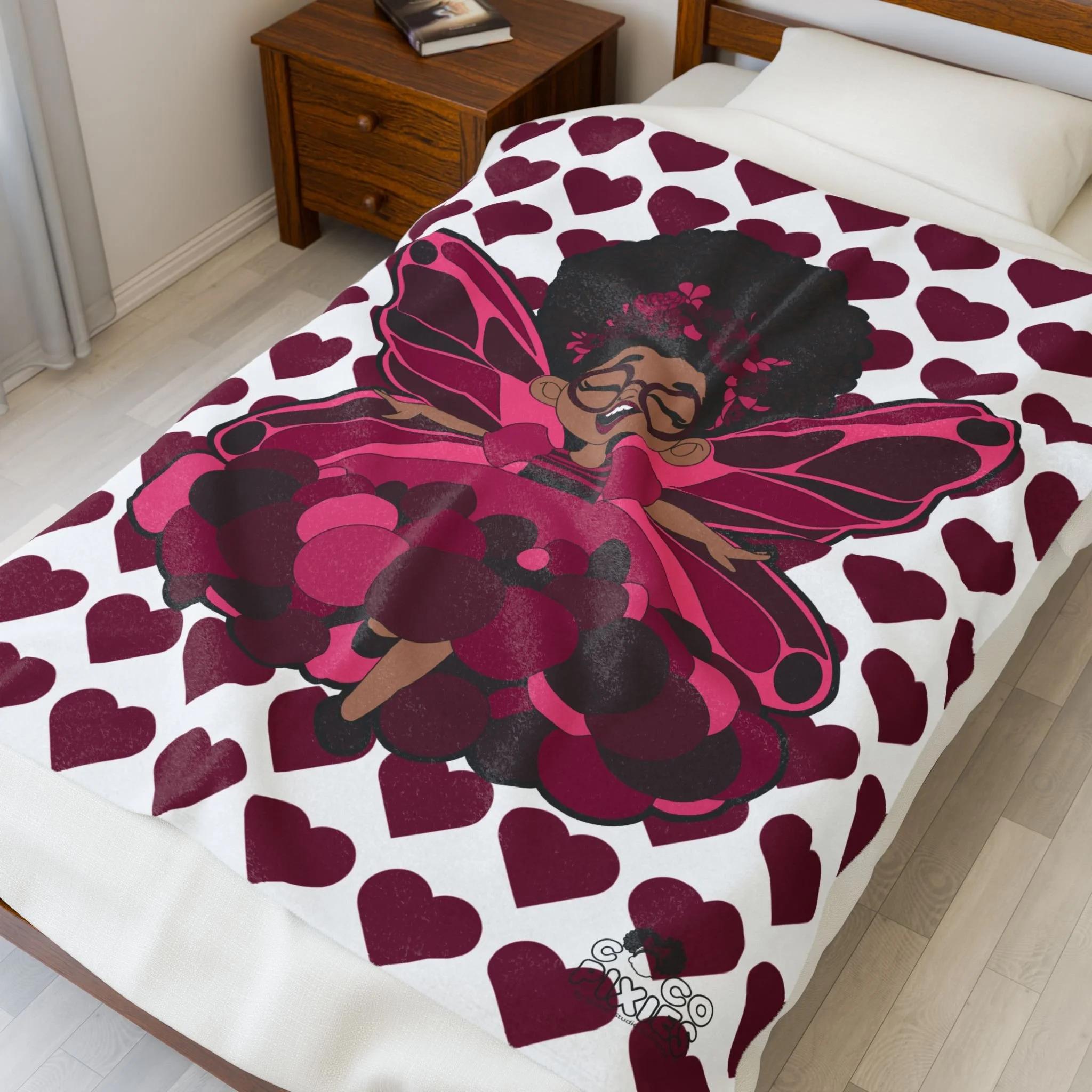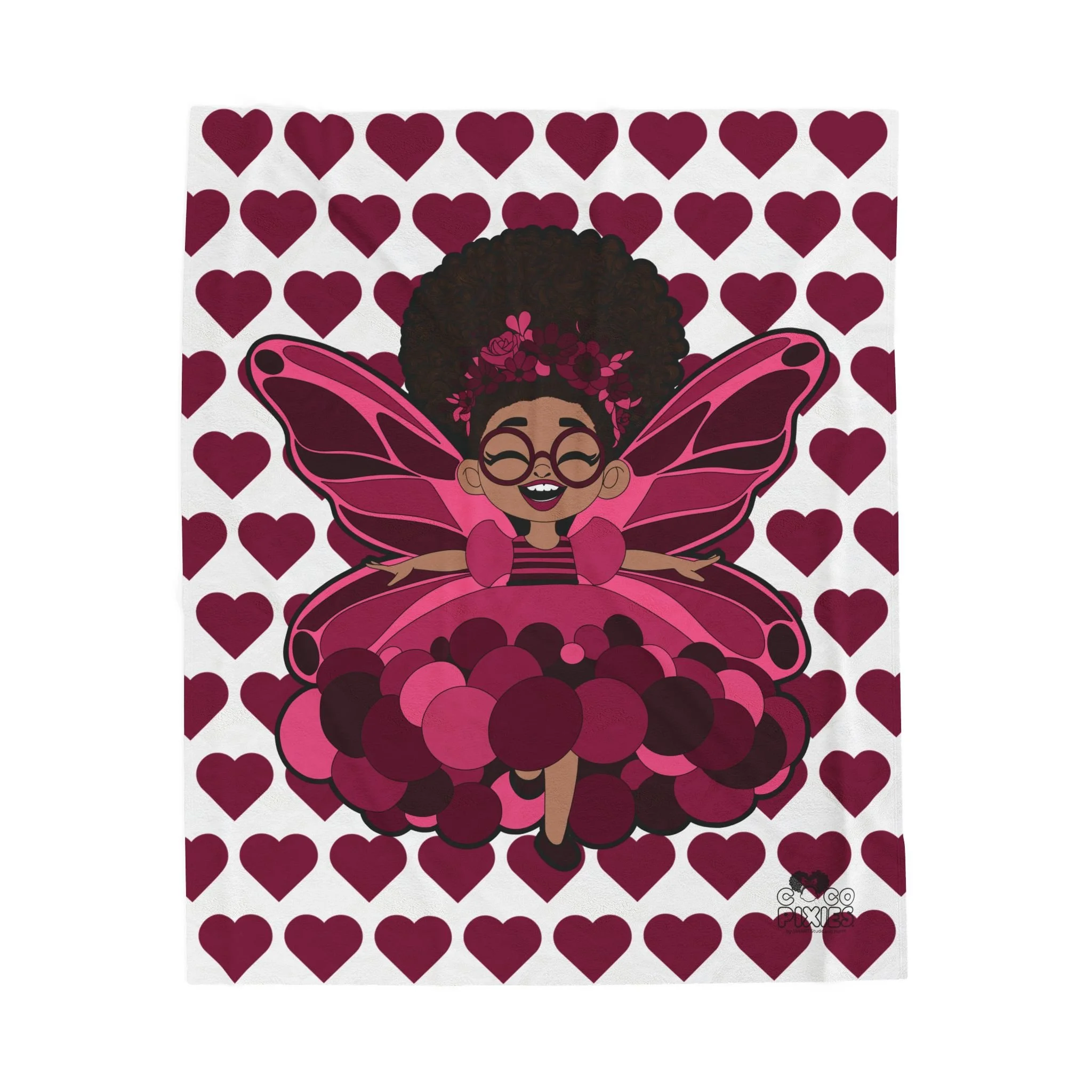 Delightful Daisy Pixie Velveteen Plush Blanket - Coco Pixies Signature Heart Pattern Throw, 50" x 60"
