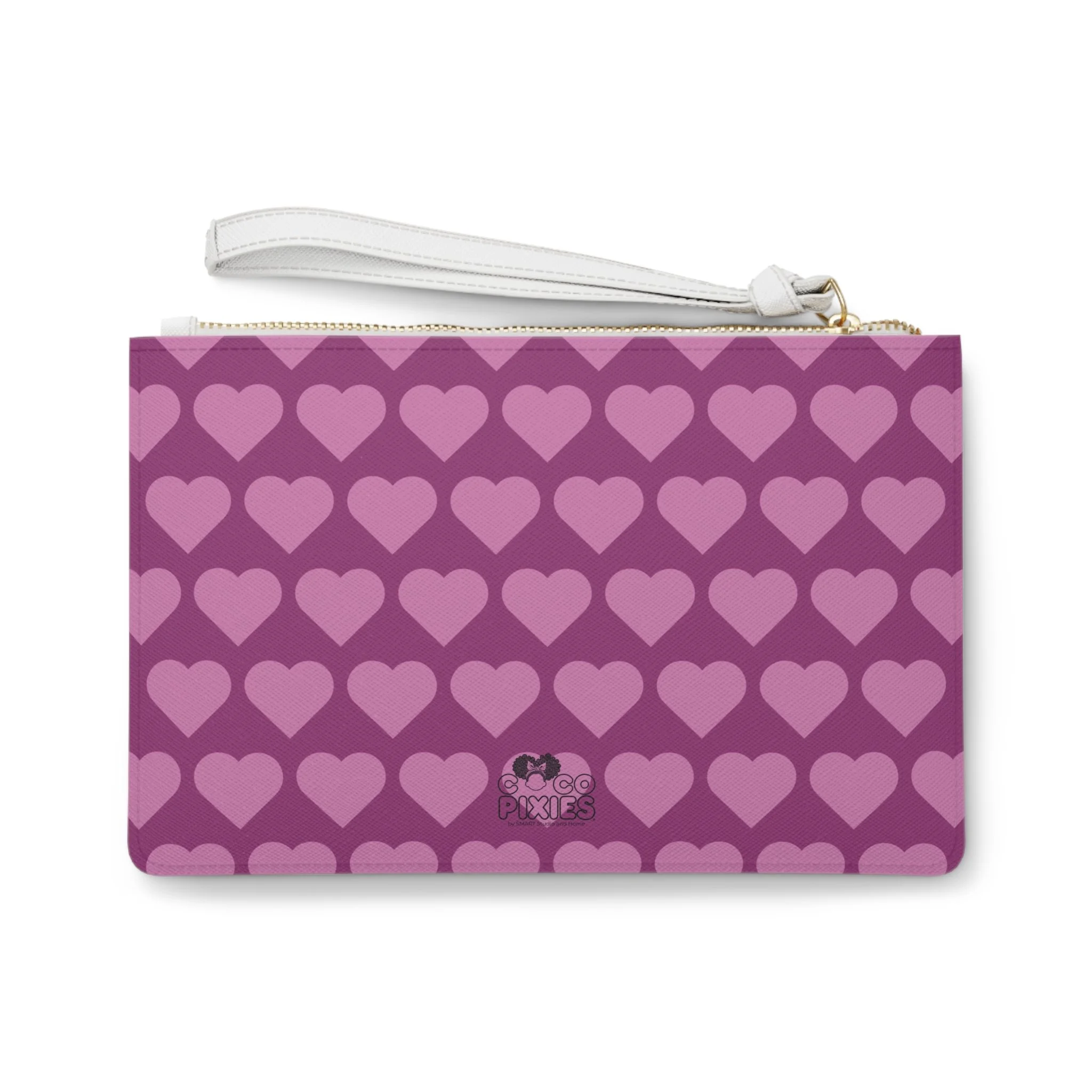 Fiona Flutter Pixie Clutch Bag - Coco Pixies Magenta Signature Heart Pattern Wristlet With Zipper