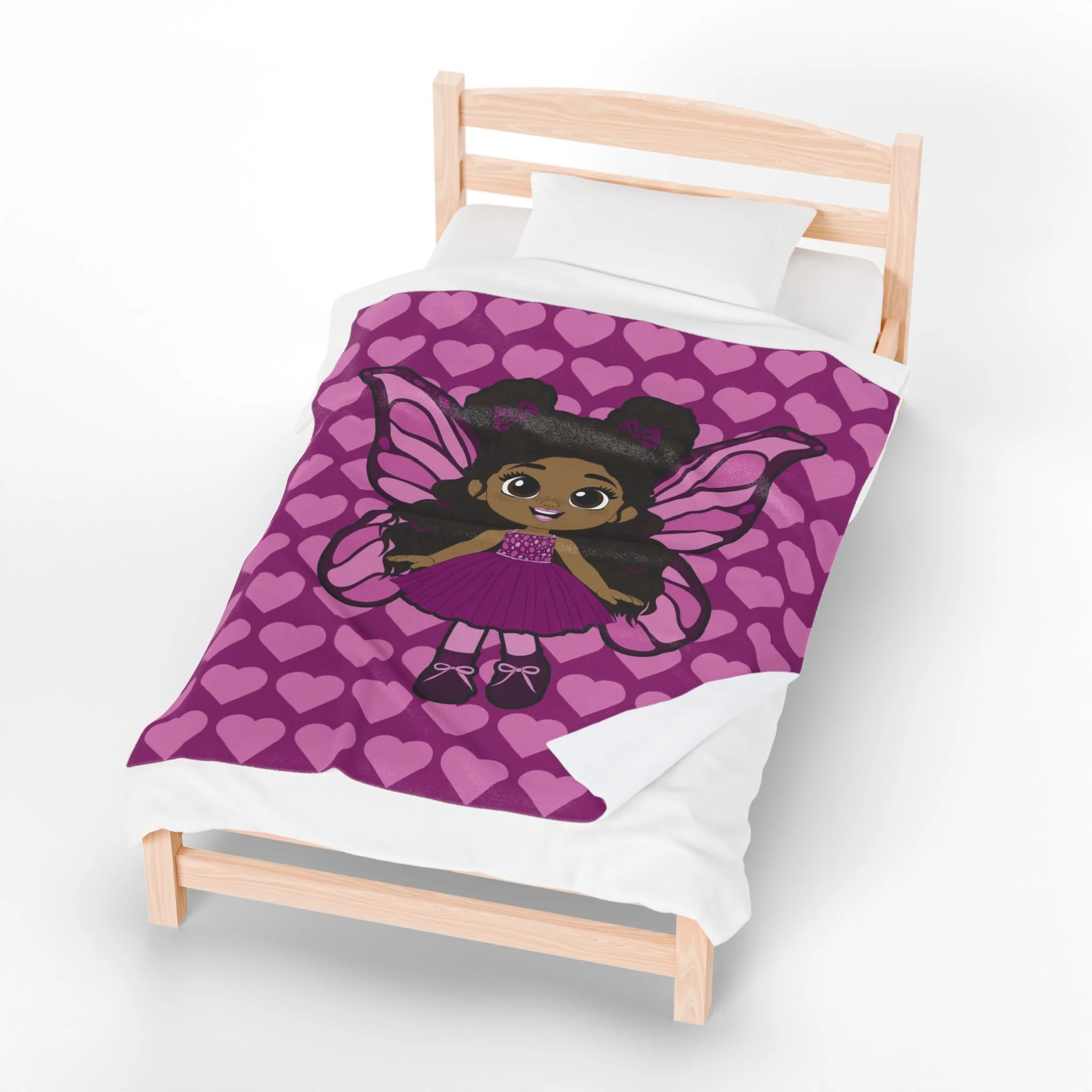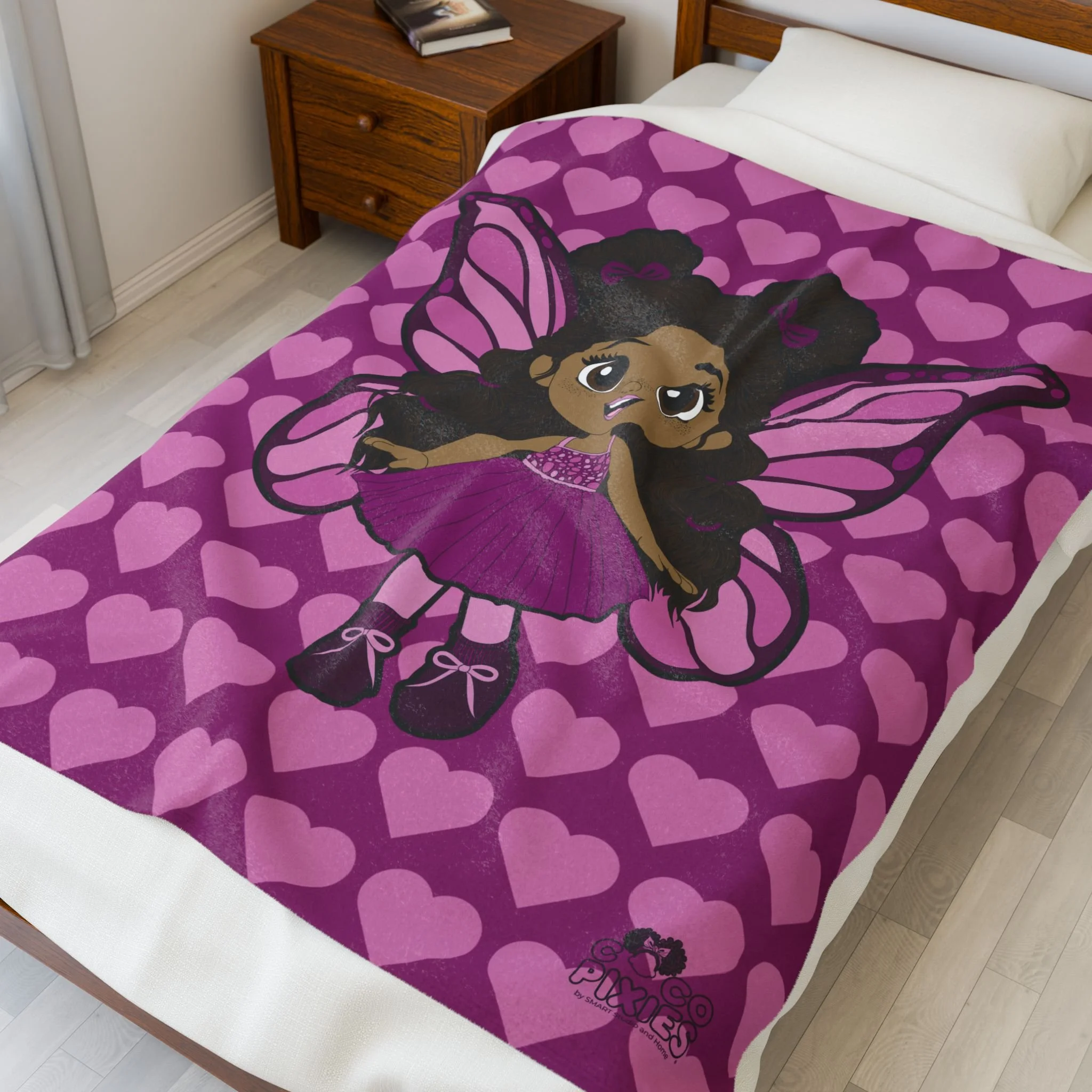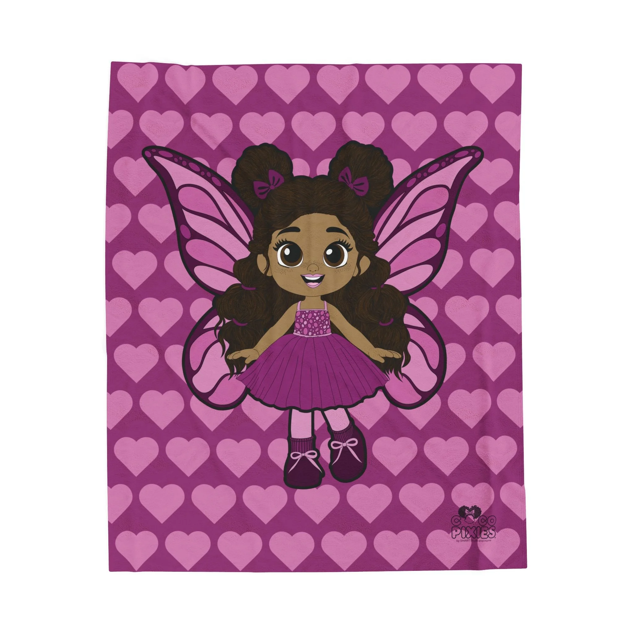 Fiona Flutter Pixie Velveteen Plush Blanket - Coco Pixies Magenta Signature Heart Pattern Throw, 50" x 60"