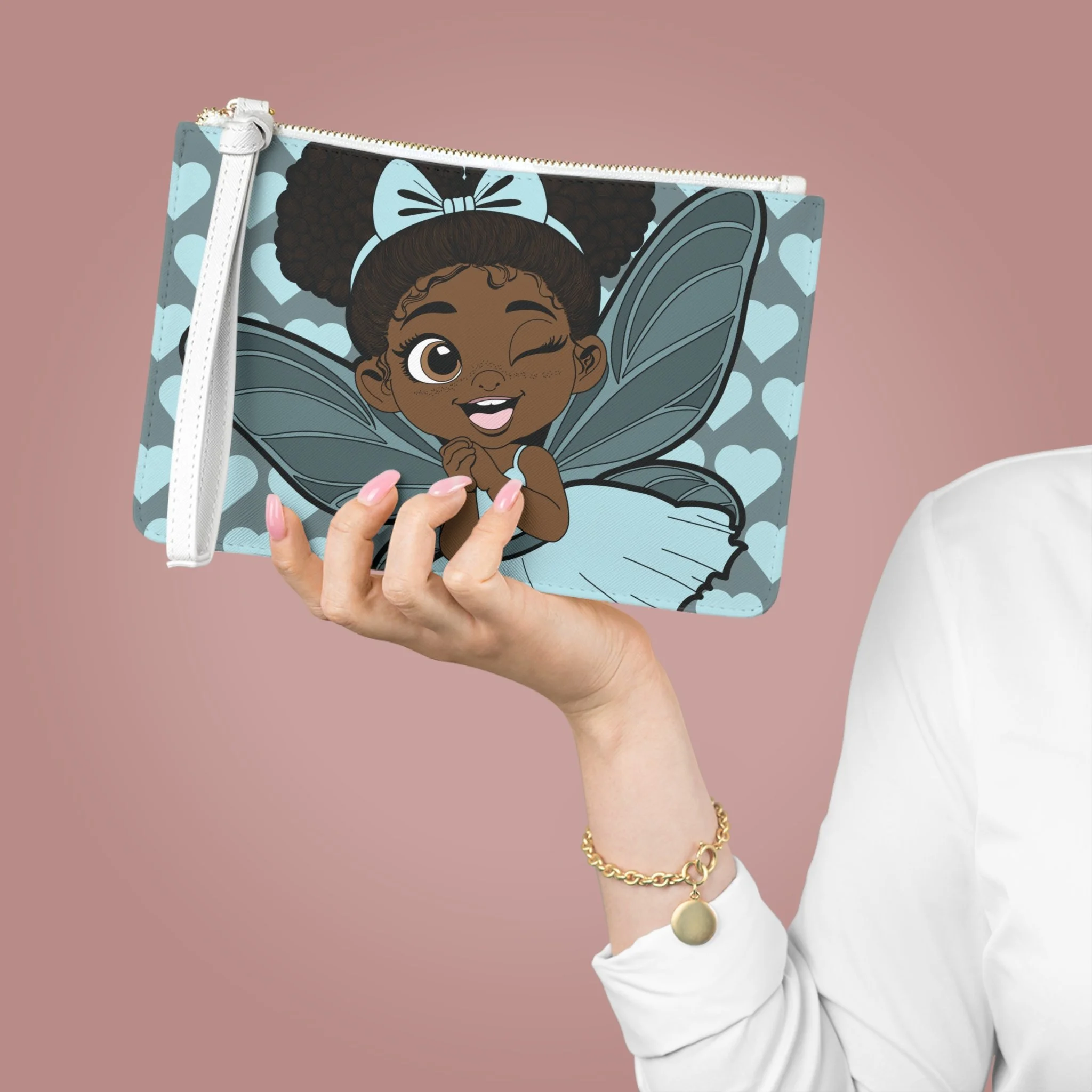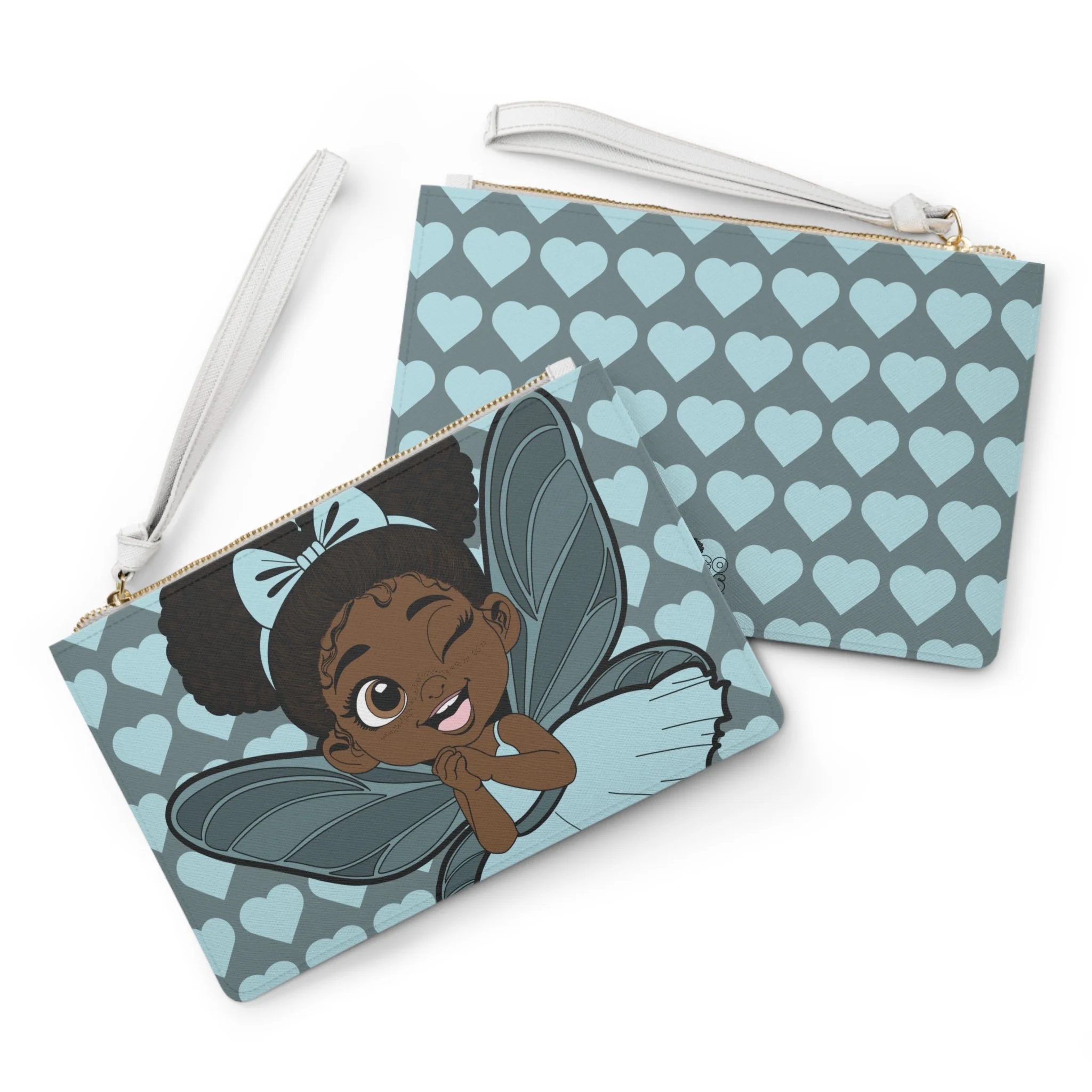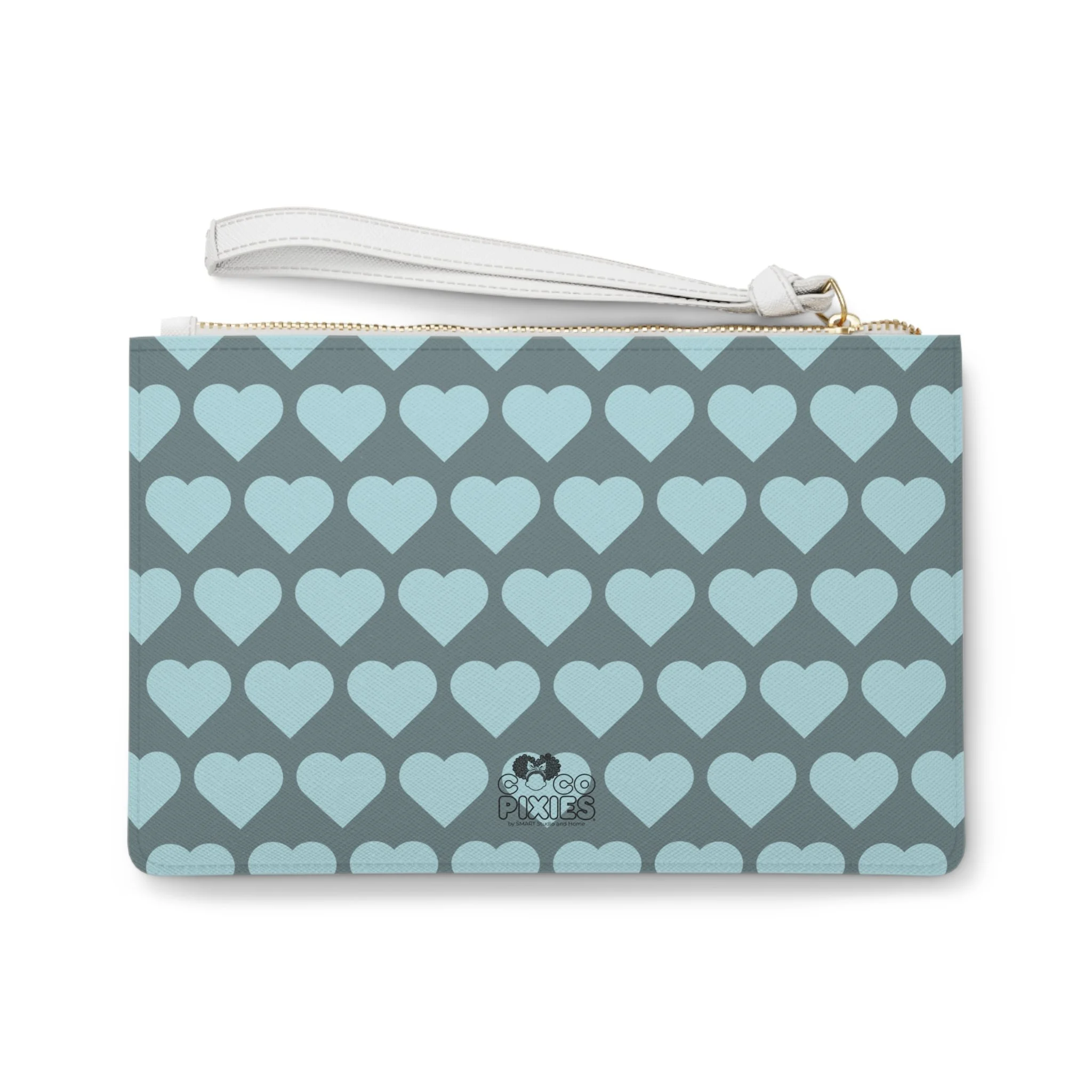 Gleeful Grace Pixie Clutch Bag - Coco Pixies Icy Blue Signature Heart Pattern Wristlet With Zipper