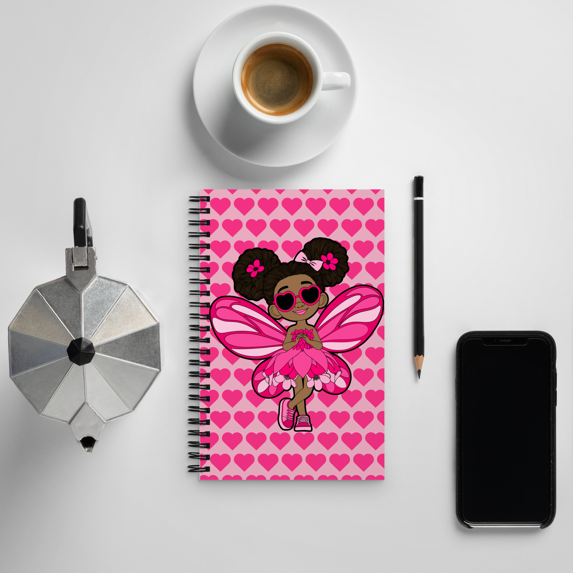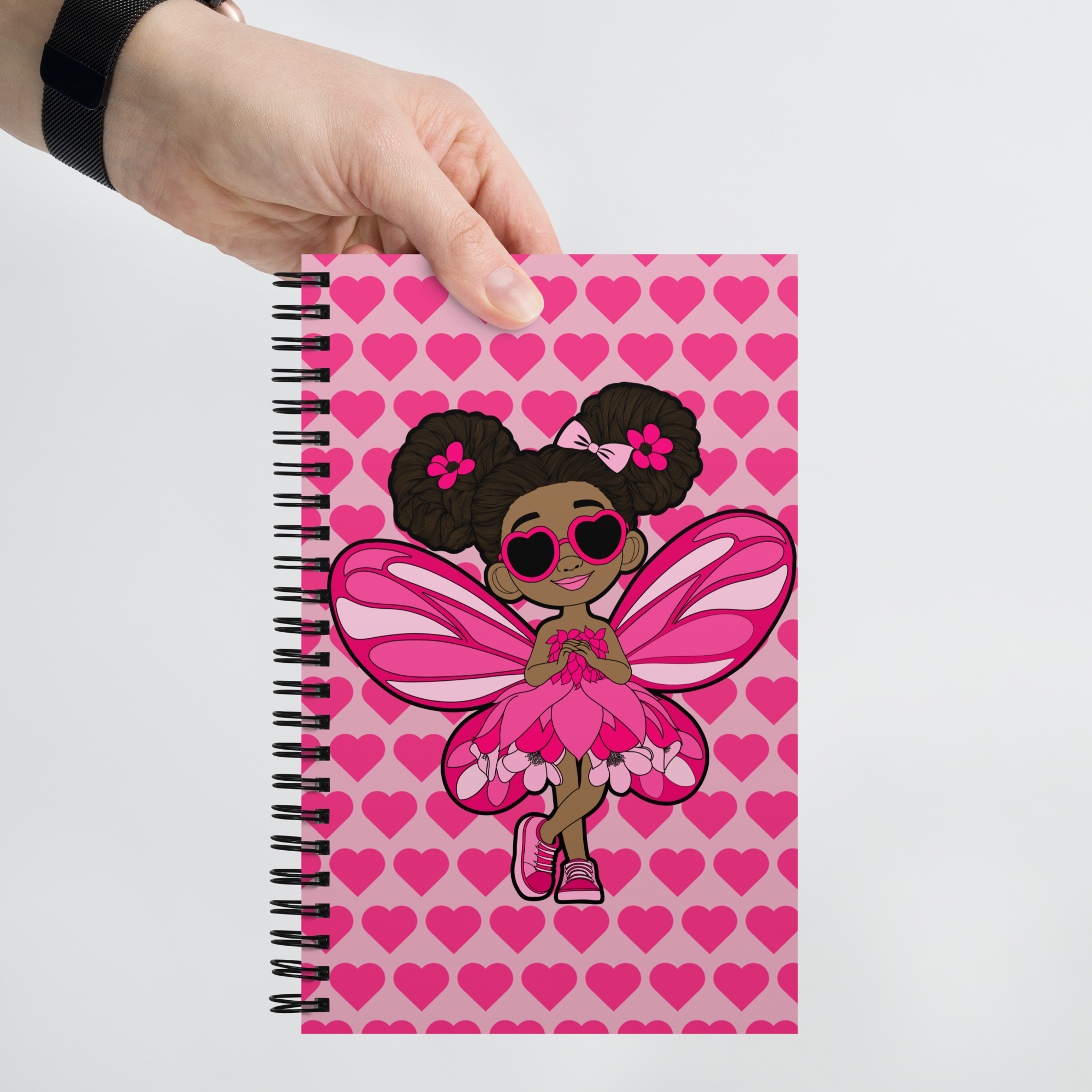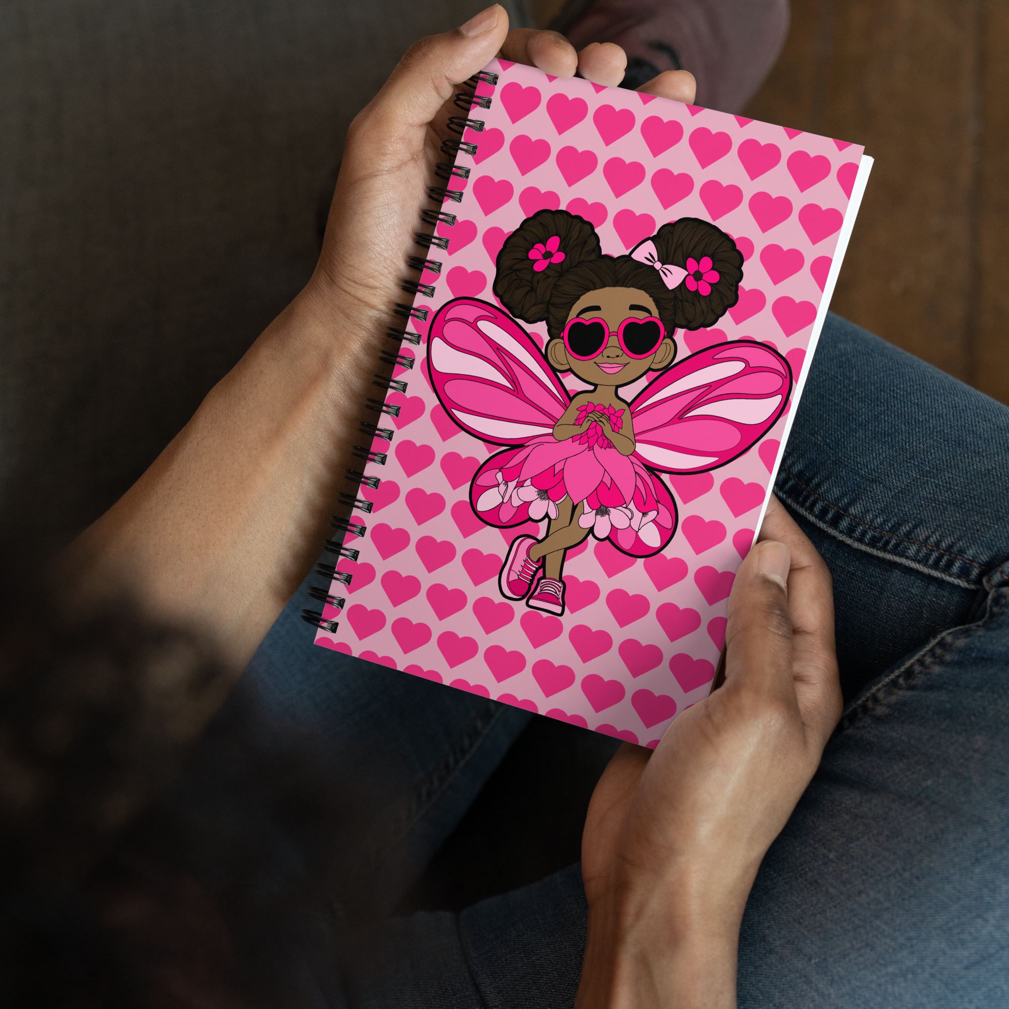 Glitzy Gracelynn’s signature look—double puff buns with floral accents, layered pink wings, and confident crossed pose—adds personality and flair to every writing session. Whether it’s secrets, big ideas, daily reflections, or creative stories, this notebook keeps inspiration close and style even closer.