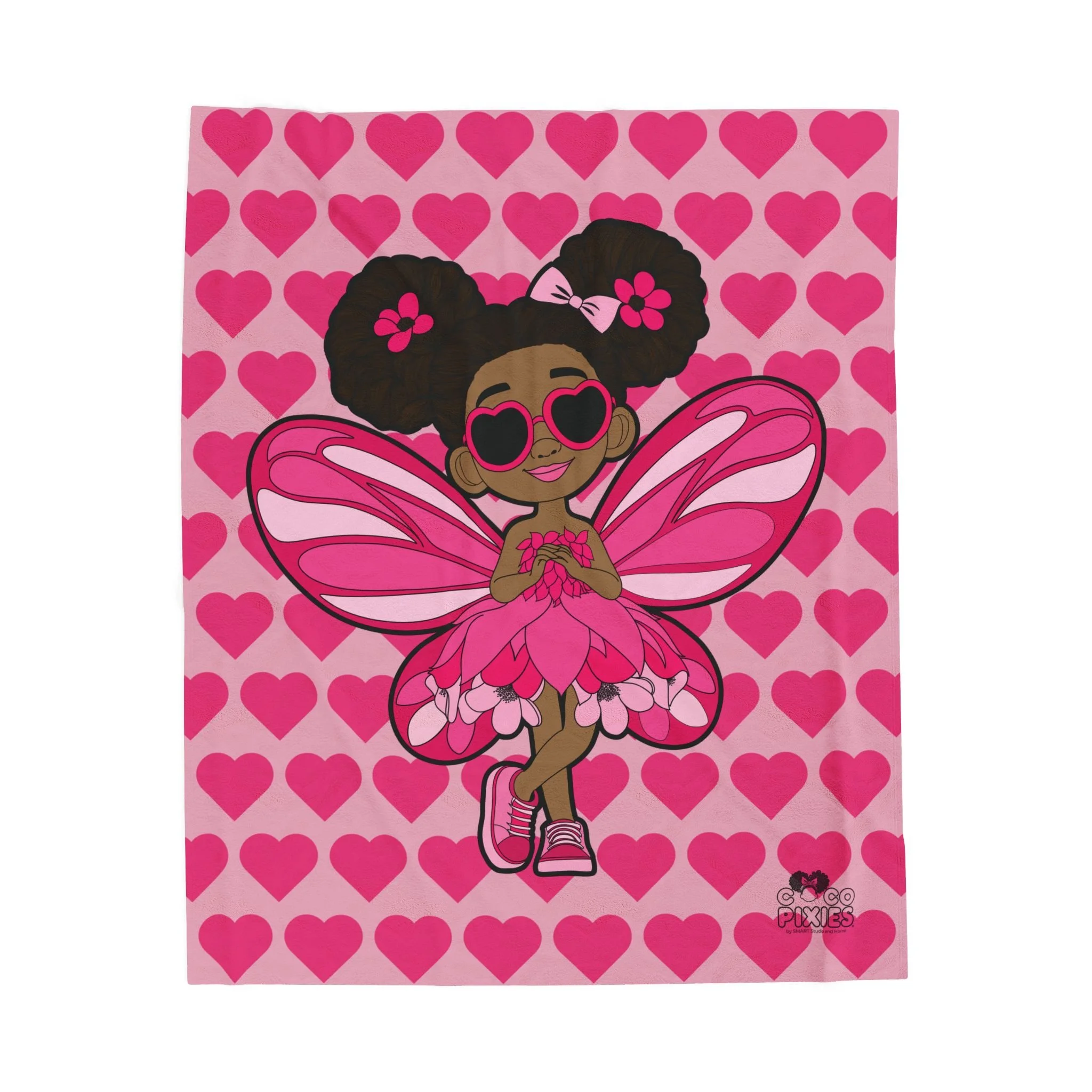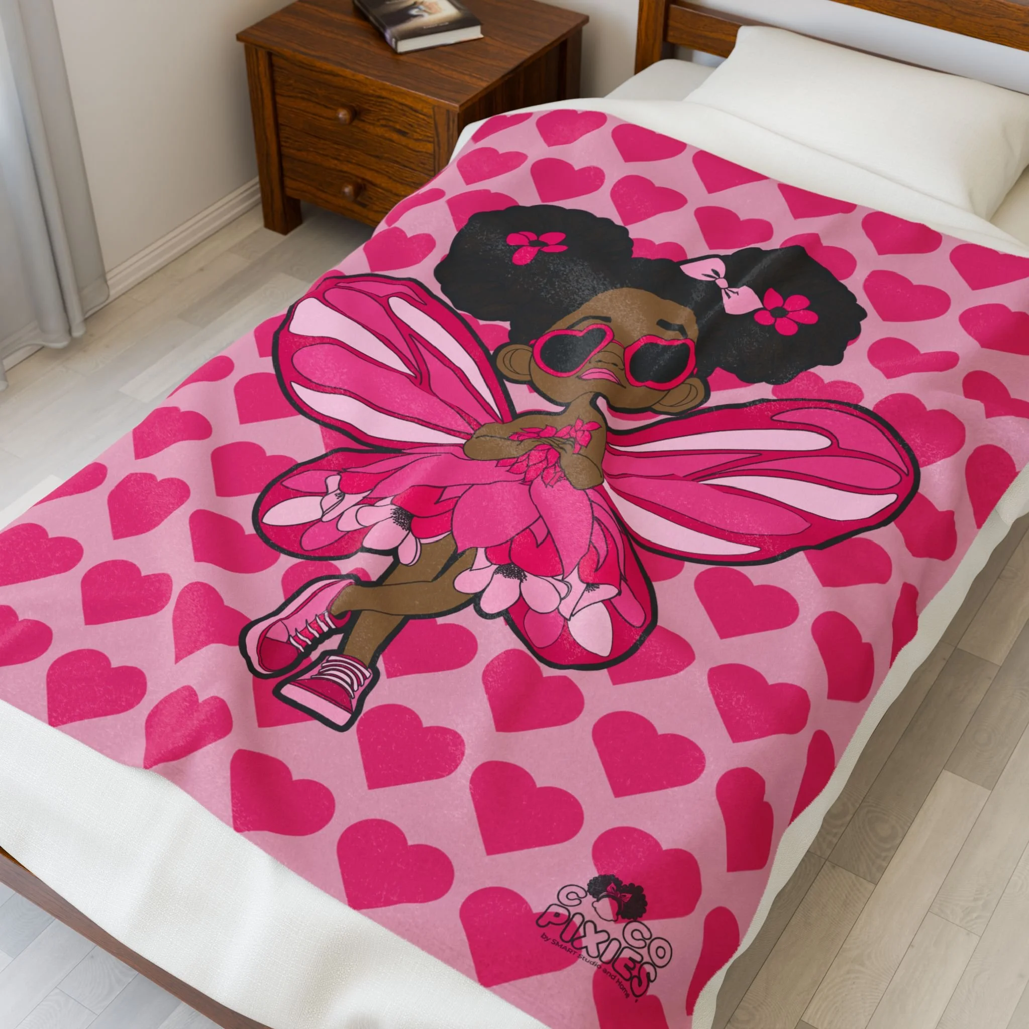 Glitzy Gracelynn Pixie Velveteen Plush Blanket - Coco Pixies Bubblegum Pink Signature Heart Pattern Throw, 50" x 60"