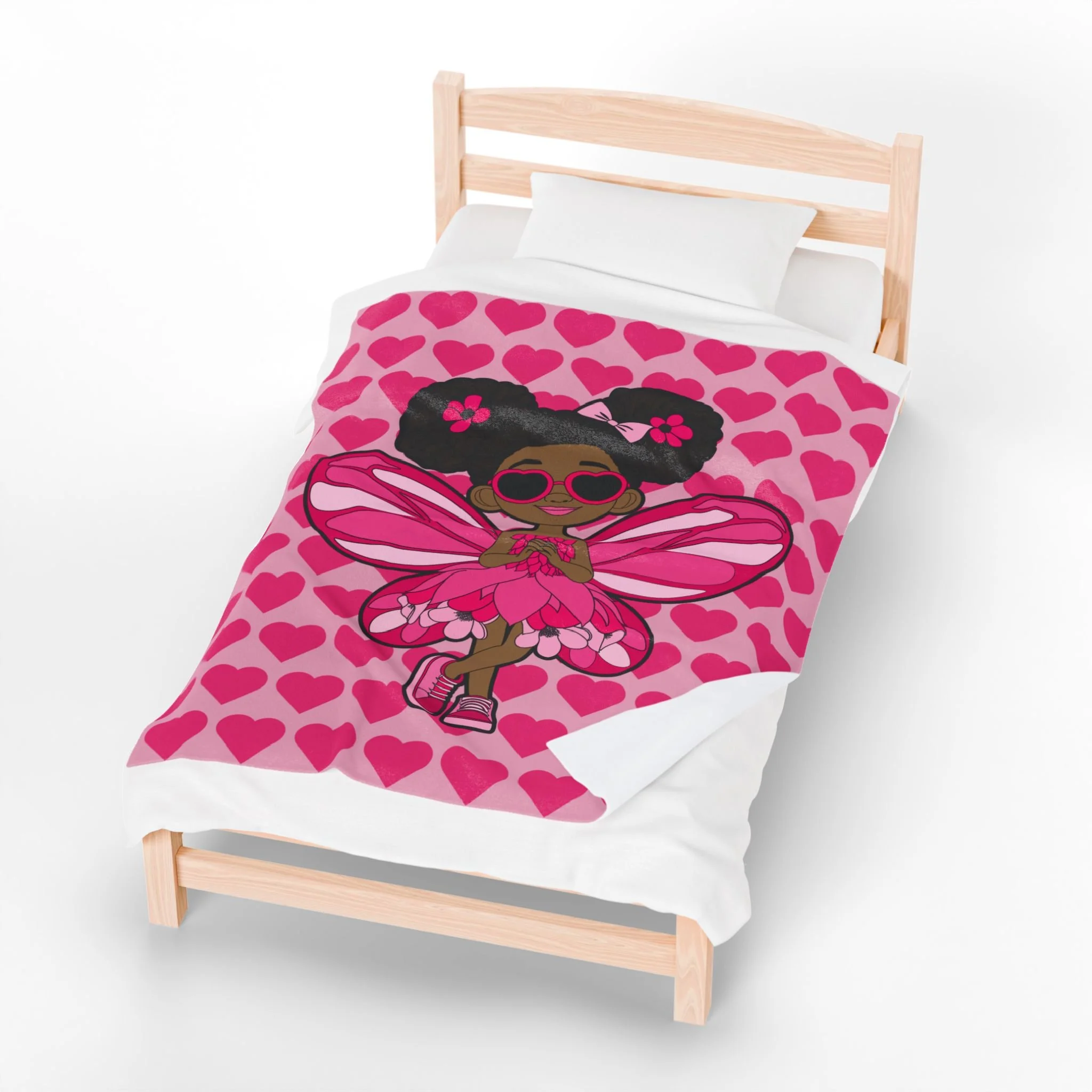 Create a cozy and magical atmosphere with the Coco Pixies Glitzy Gracelynn Velveteen Blanket. Featuring Glitzy Gracelynn, a stylish and confident pink pixie surrounded by playful heart patterns, this plush velveteen blanket brings warmth, comfort, and charm to any child’s space. Soft to the touch and designed with kids in mind, it’s perfect for bedtime, storytime, movie nights, or quiet moments of relaxation. A delightful blend of whimsy and comfort, this blanket makes a beautiful addition to bedrooms, playrooms, or as a thoughtful gift.