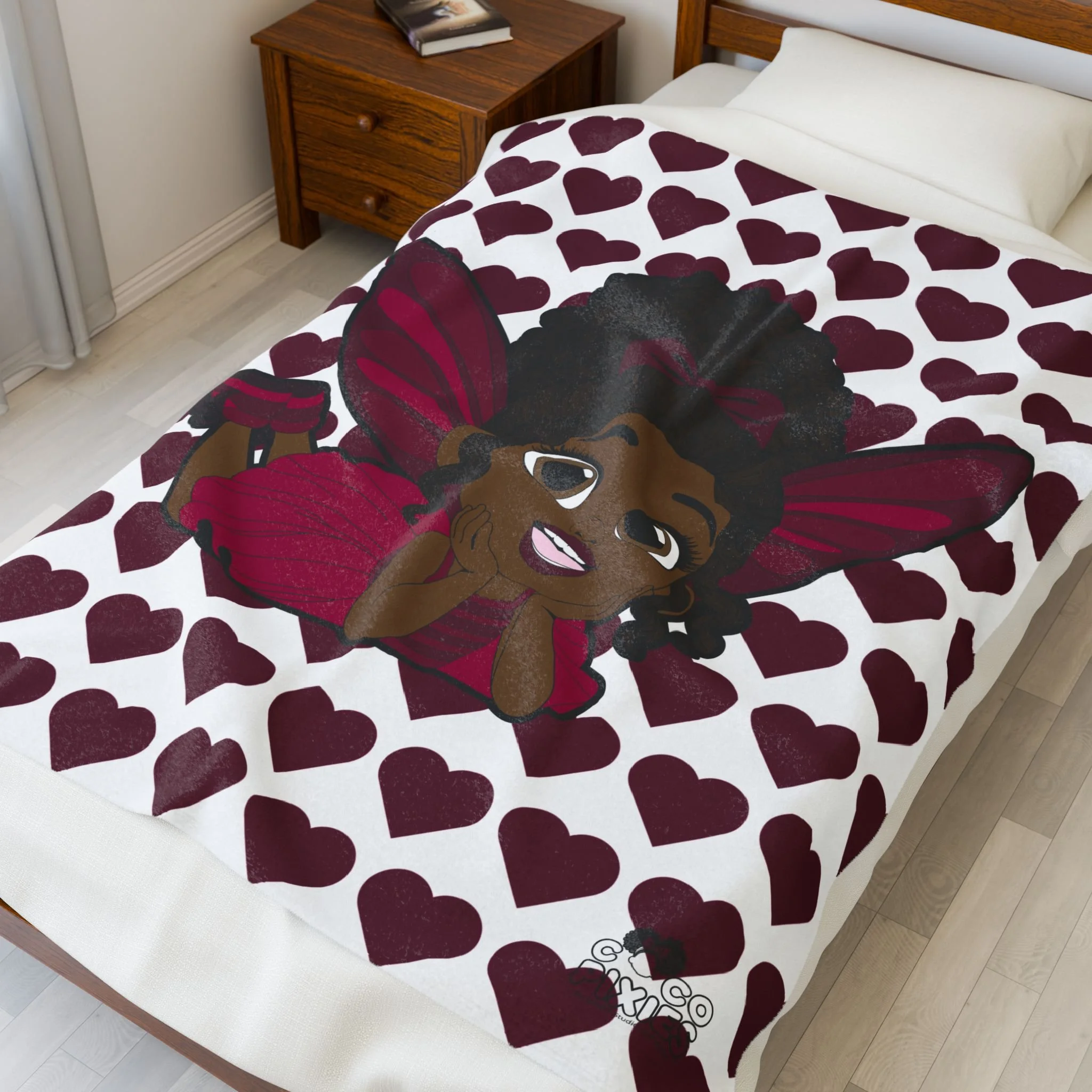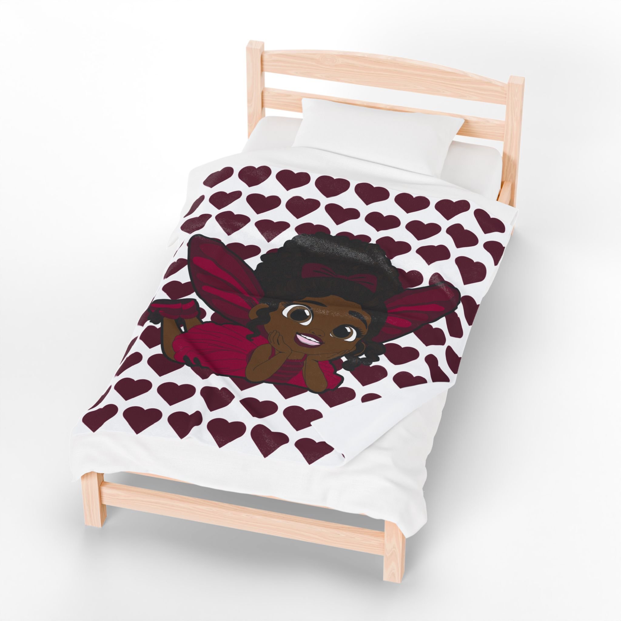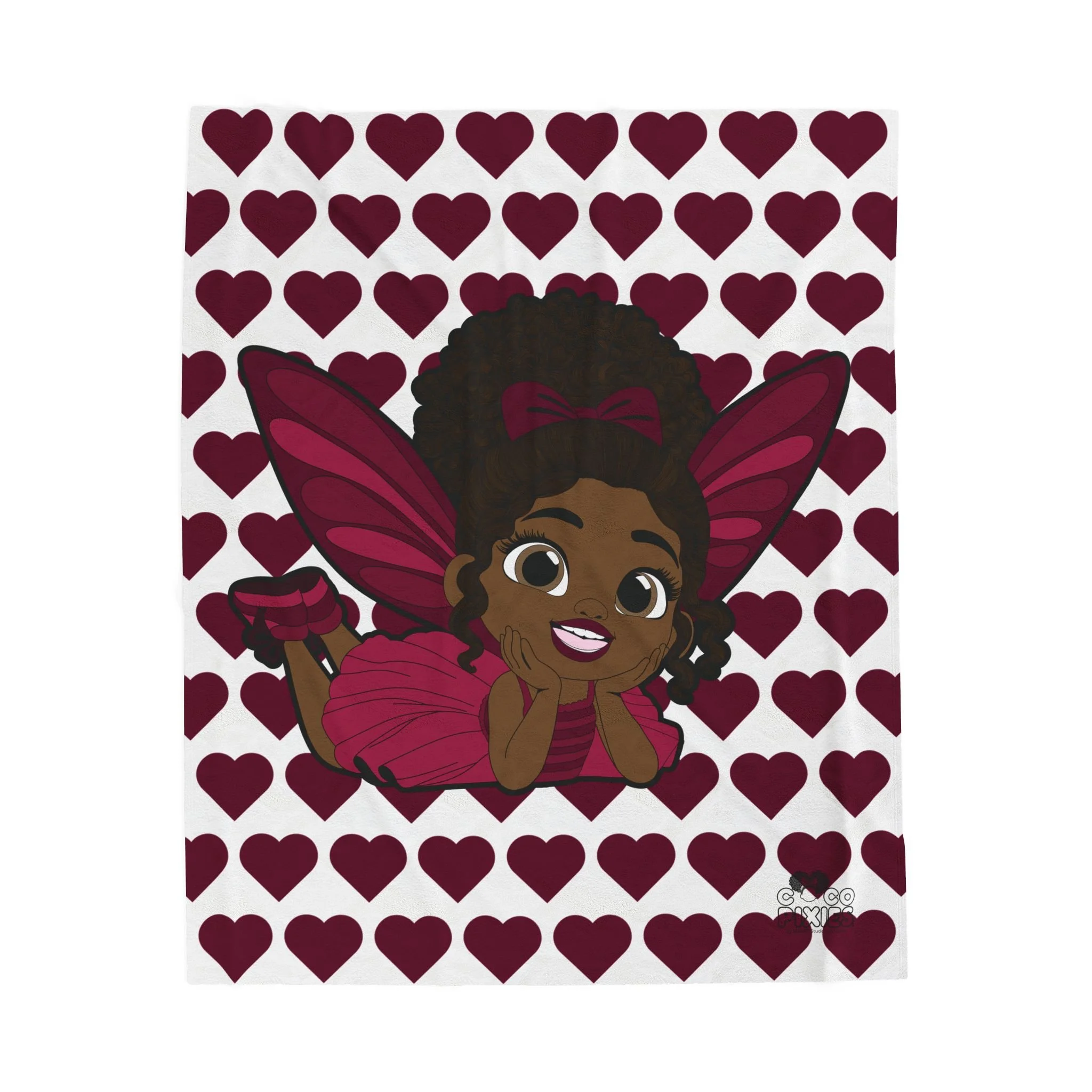 Happy Harper Pixie Velveteen Plush Blanket - Coco Pixies Signature Heart Pattern Throw, 50" x 60"