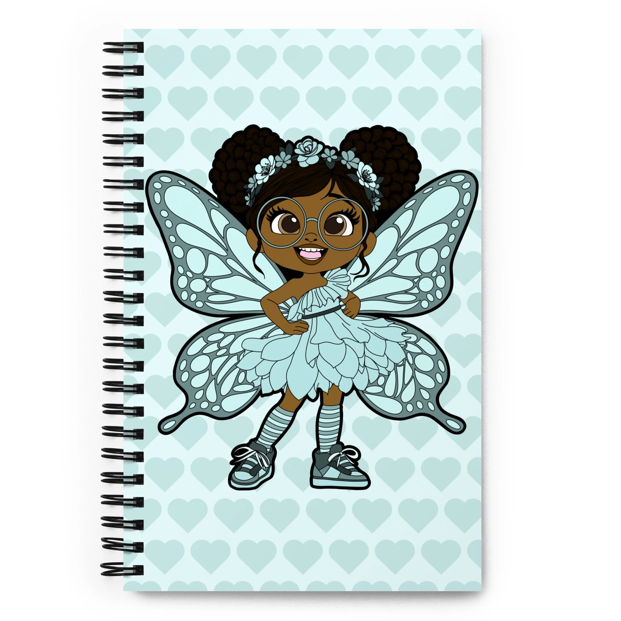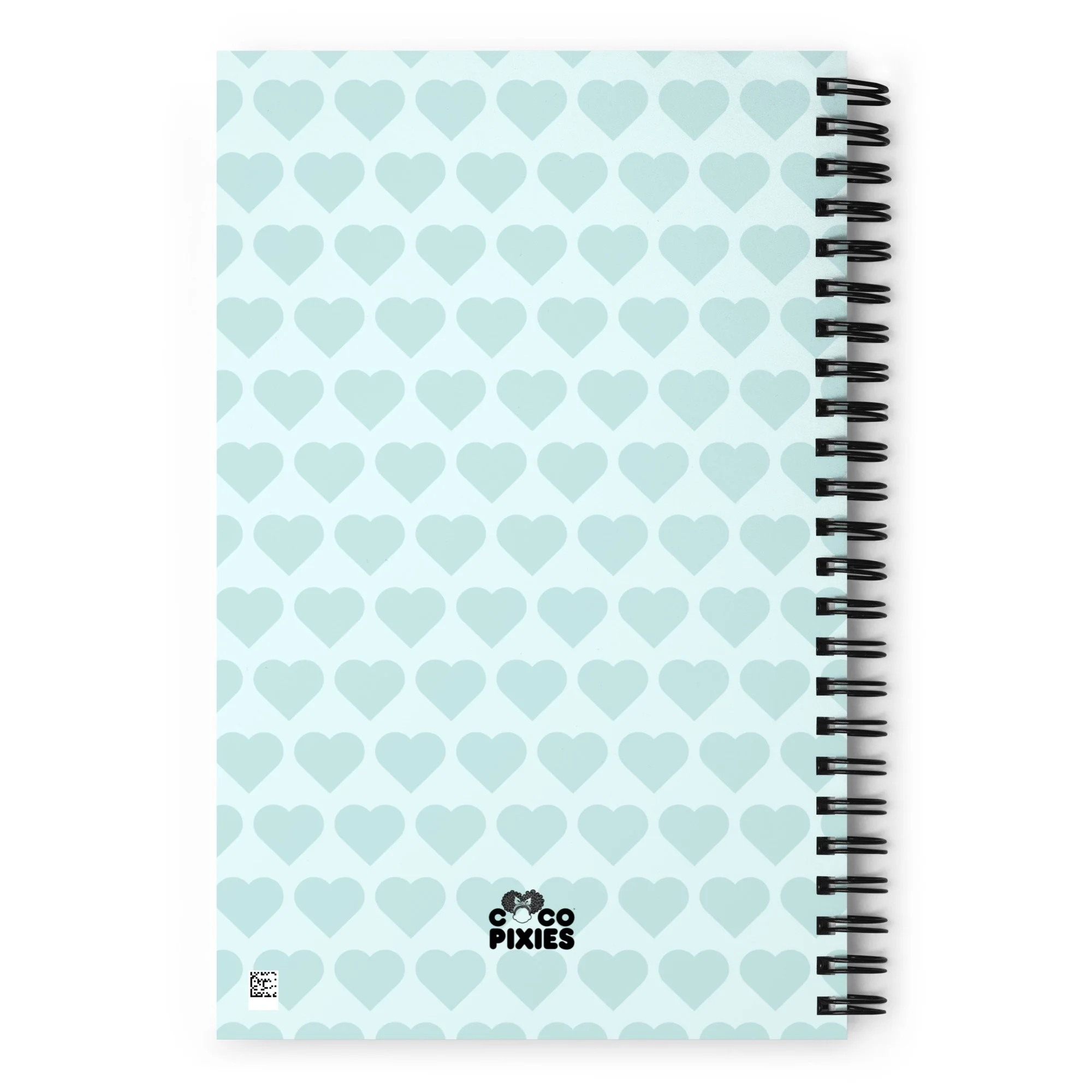 JoJo Jollypuff Pixie Notebook by Coco Pixies brings personality, style, and creativity to every page. Wrapped in a soft blue signature heart pattern, this spiral-bound journal features JoJo Jollypuff front and center—rocking her double afro puffs, oversized glasses, and petal-inspired dress with effortless confidence. It’s the perfect blend of playful design and everyday function, made for writing, sketching, dreaming, and planning in style.