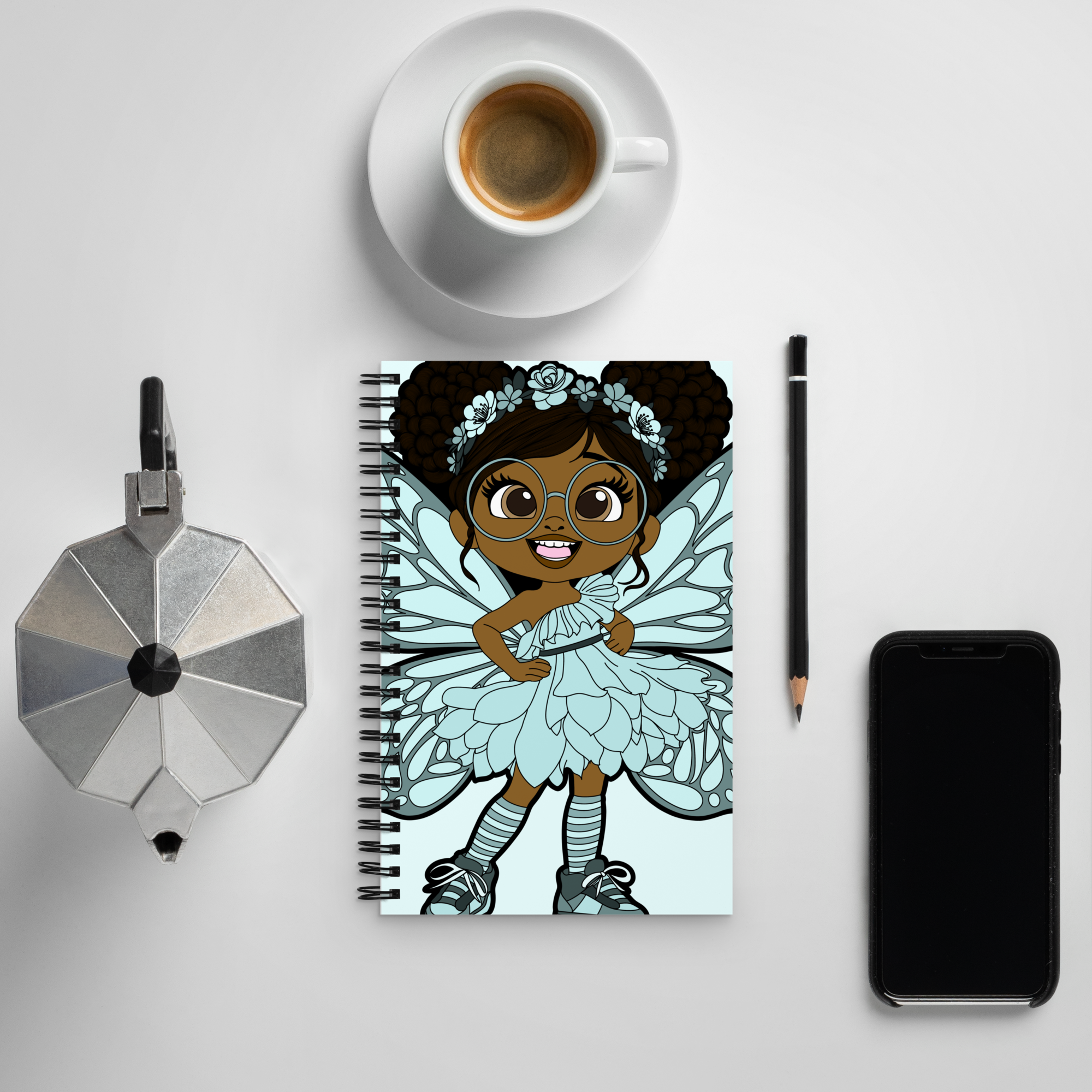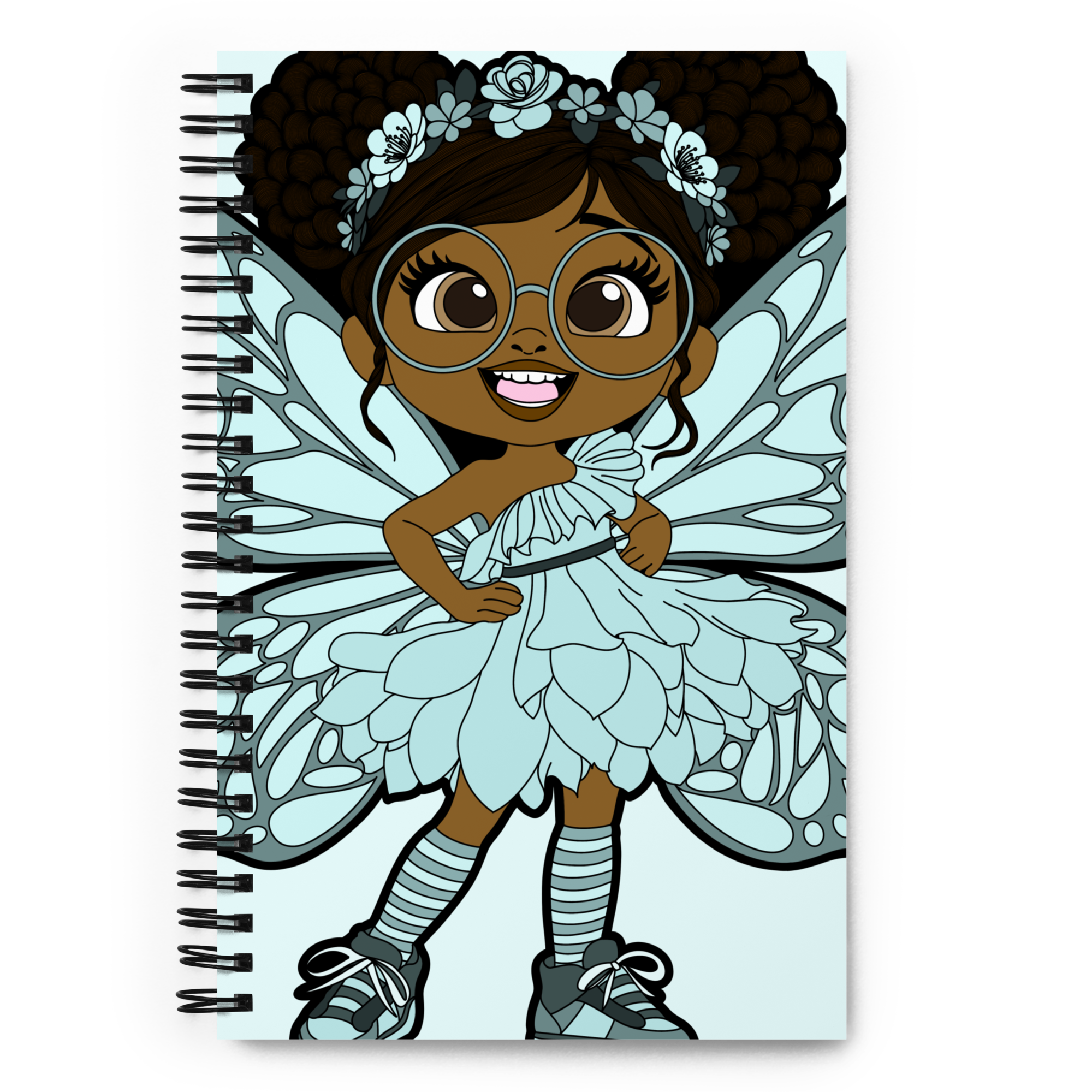 JoJo Jollypuff Pixie Notebook by Coco Pixies makes a bold, confident statement with a close-up design that puts her radiant personality front and center. Framed by soft blue tones and delicate wing details, JoJo’s oversized glasses, floral crown, and signature afro puffs bring a fresh, stylish energy to every page. This spiral-bound journal blends expressive design with everyday function—perfect for capturing ideas, thoughts, and creativity in a way that feels personal and inspiring.