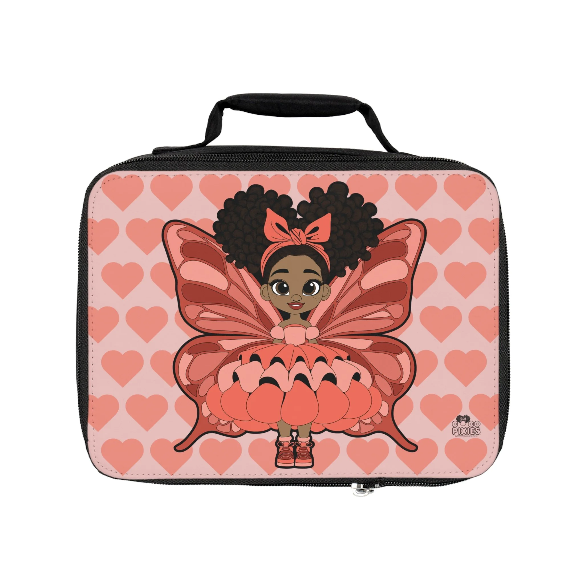 Lovely Layla brings sweetness with confidence in this Coco Pixies lunch bag designed to turn everyday meals into a statement. Dressed in soft pink tones, signature heart patterns, and layered pixie wings, Lovely Layla pairs charm with self-assured style. This insulated lunch bag blends playful design with practical function, making it a standout accessory for school days, outings, or on-the-go moments that deserve a little extra flair.