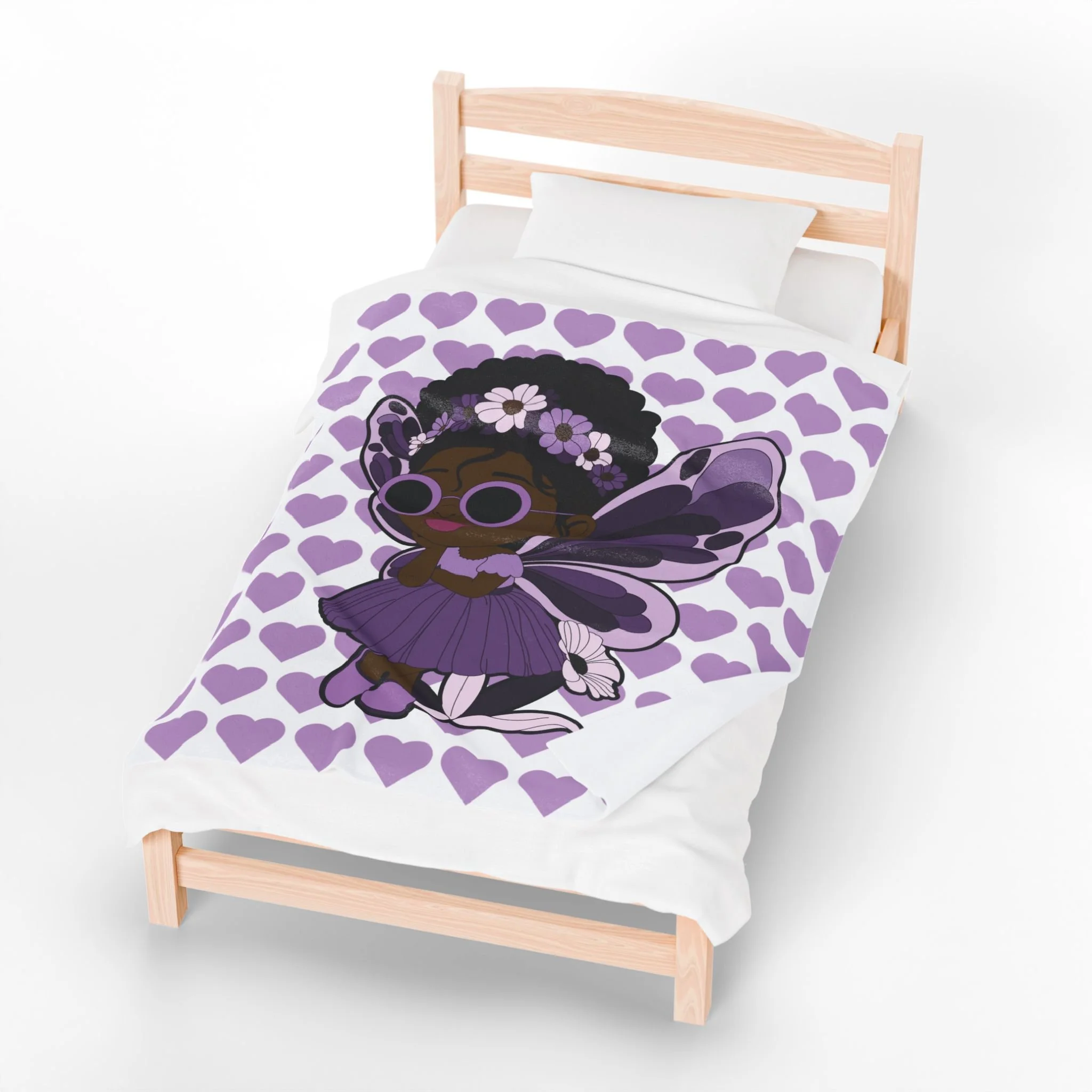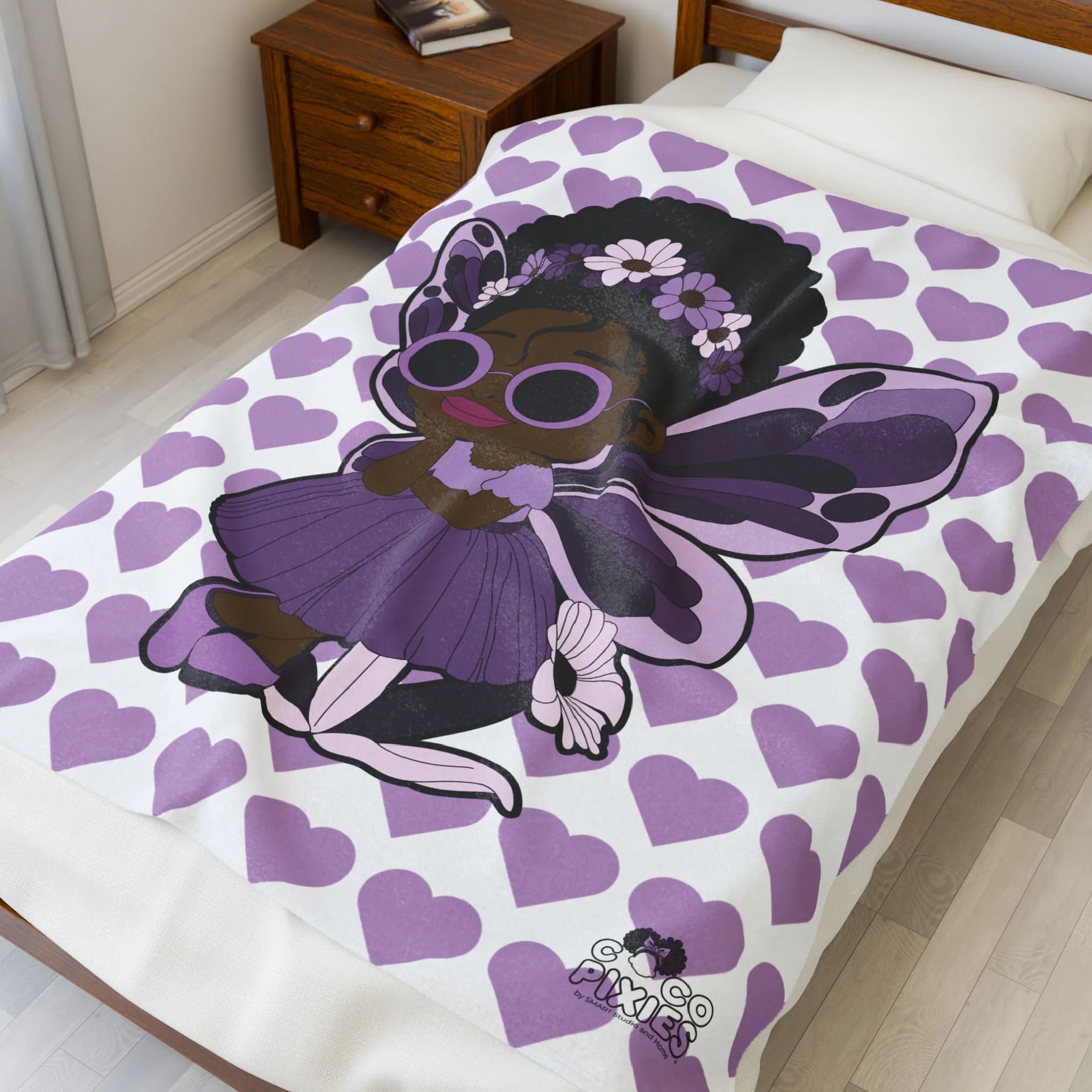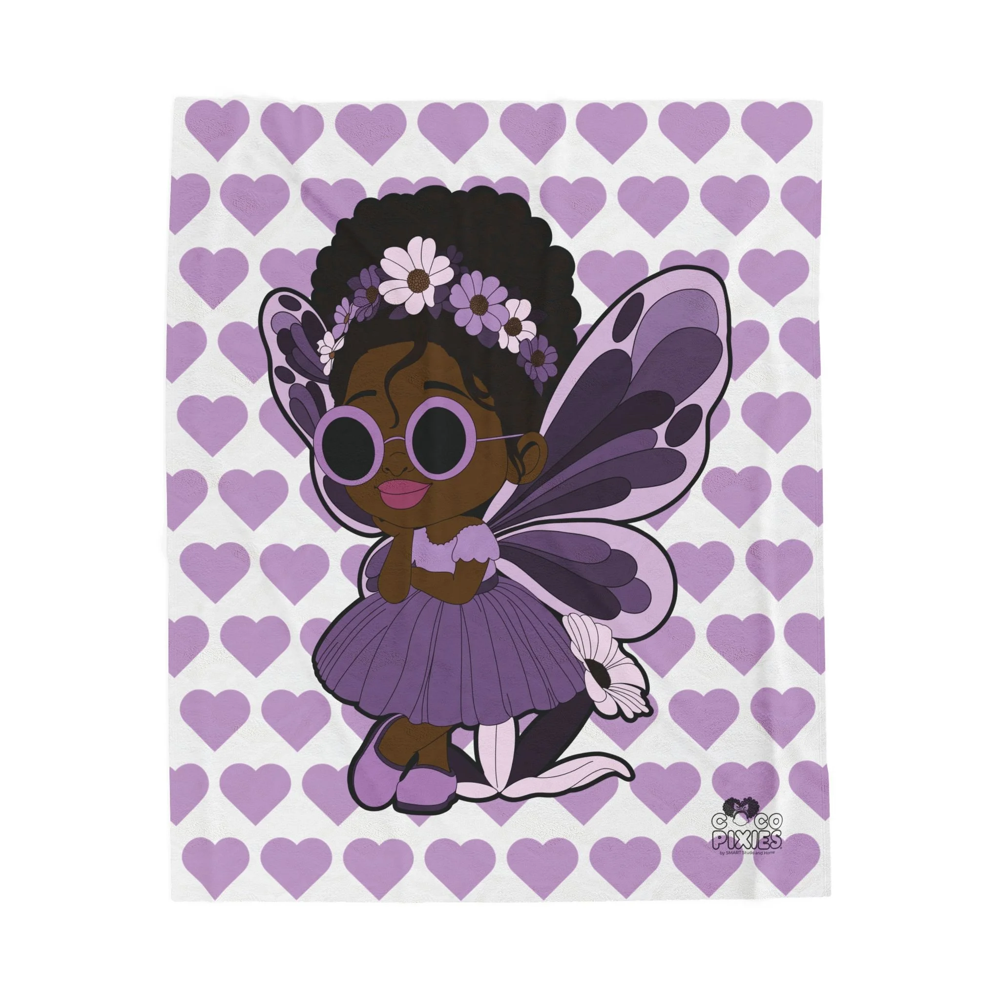 Marvelous Mia Pixie Velveteen Plush Blanket - Coco Pixies Signature Heart Pattern Throw, 50" x 60"