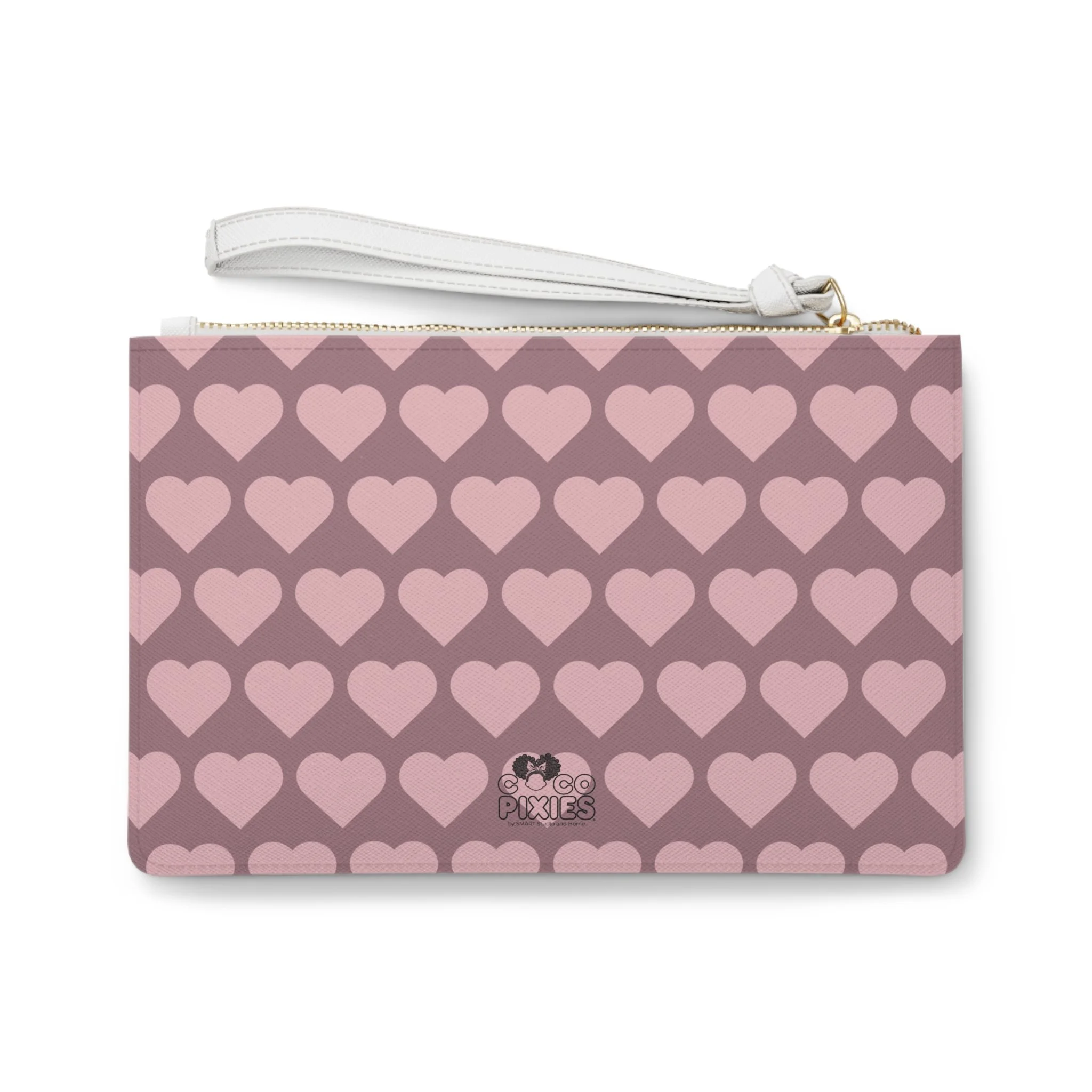 Penelope Pixie Clutch Bag - Coco Pixies Dusty Rose Signature Heart Pattern Wristlet With Zipper
