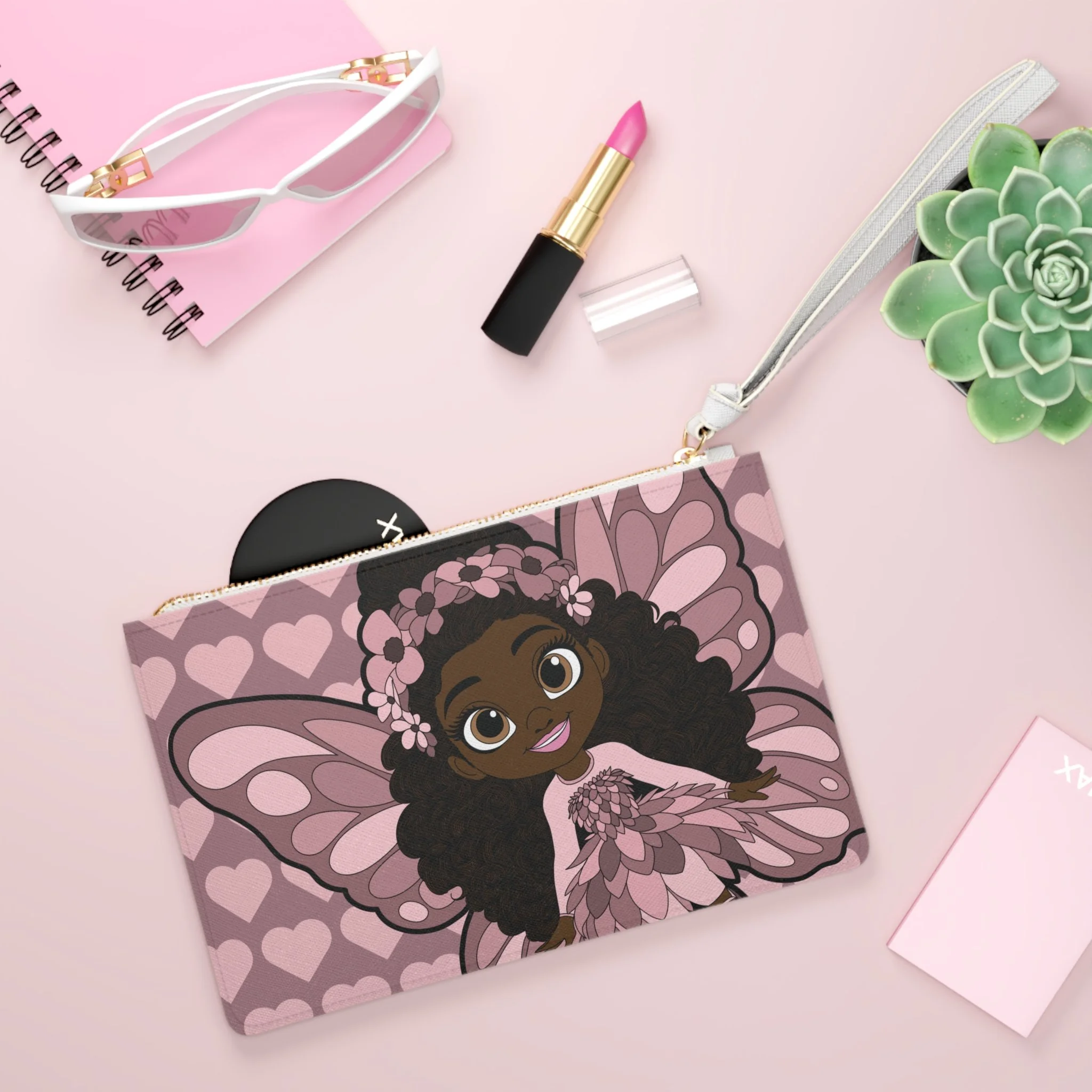 The Penelope Pixie Clutch Bag from the Coco Pixies collection is a sweet and stylish accessory designed to celebrate imagination, confidence, and charm. Featuring Penelope Pixie with her signature curls, soft pink wings, floral crown, and a heart-patterned background, this clutch blends playful character art with everyday practicality. Lightweight and easy to carry, it’s perfect for holding small essentials while adding a delightful pop of personality.