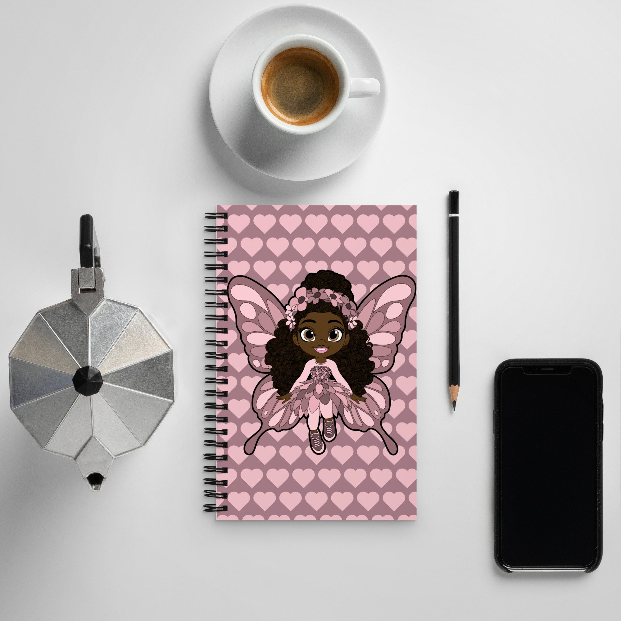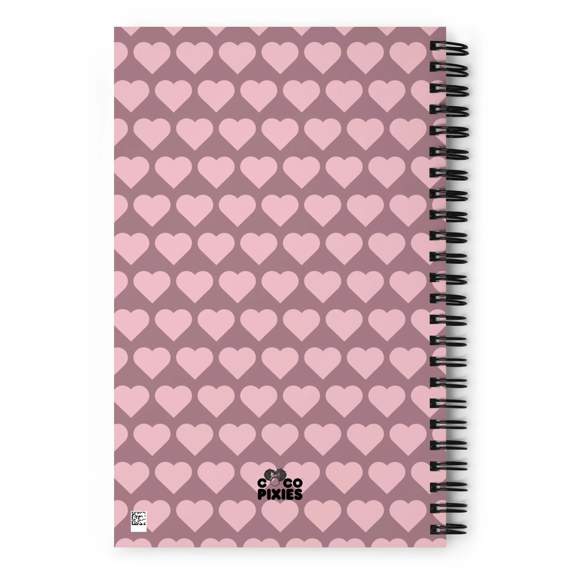 Penelope Pixie brings soft elegance and heartfelt charm to this beautifully designed Coco Pixies spiral notebook. Set against a mauve backdrop layered with blush heart patterns, Penelope’s flowing curls, floral crown, and petal-inspired dress create a look that feels graceful, confident, and expressive. Her blush-toned wings and warm smile make this journal a standout piece for girls who love thoughtful details and stylish stationery.
