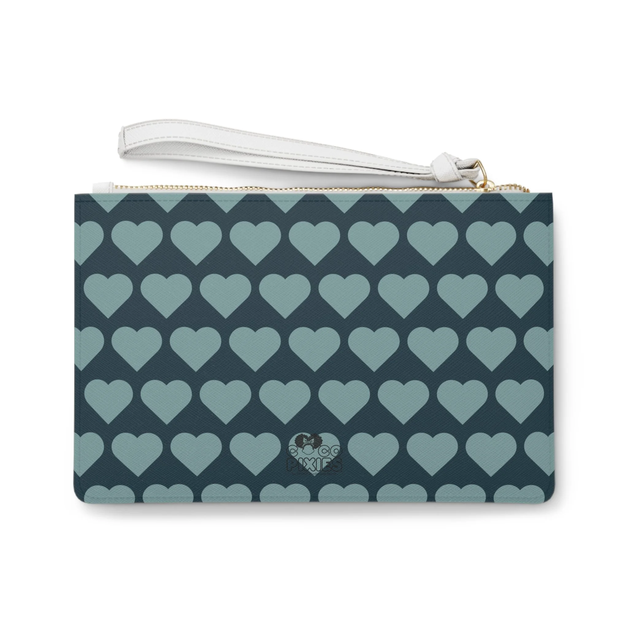 Pixie Piper Clutch Bag - Coco Pixies Aqua Teal Signature Heart Pattern Wristlet With Zipper