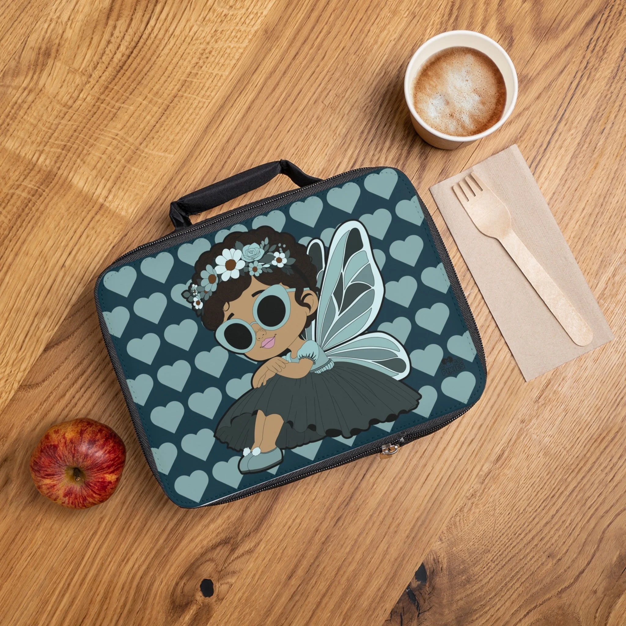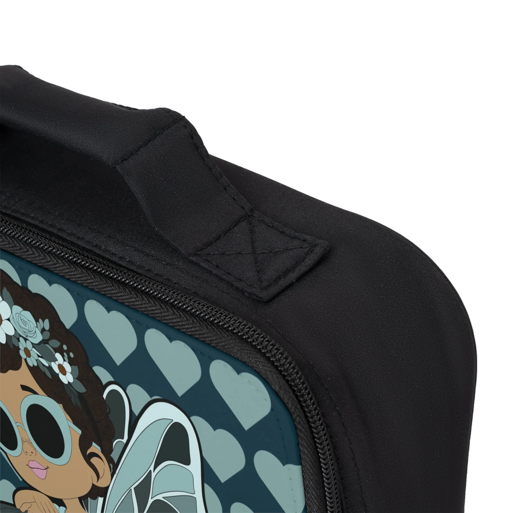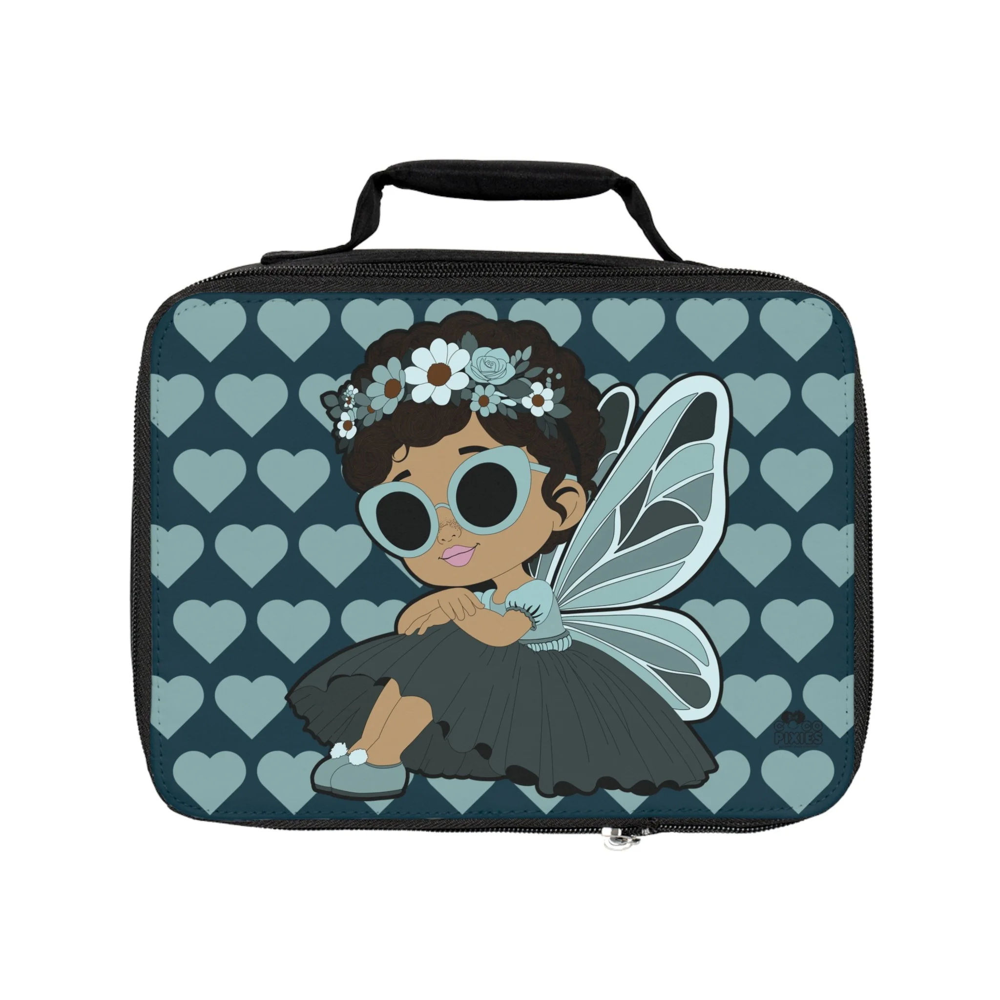 Pixie Piper brings quiet confidence and thoughtful style to this Coco Pixies lunch bag, blending cool tones, soft florals, and signature heart patterns into a design that feels calm, smart, and effortlessly chic. With her oversized shades, delicate wings, and poised posture, Pixie Piper adds personality to everyday routines while keeping lunches organized and protected in a durable, easy-to-carry clutch silhouette.
