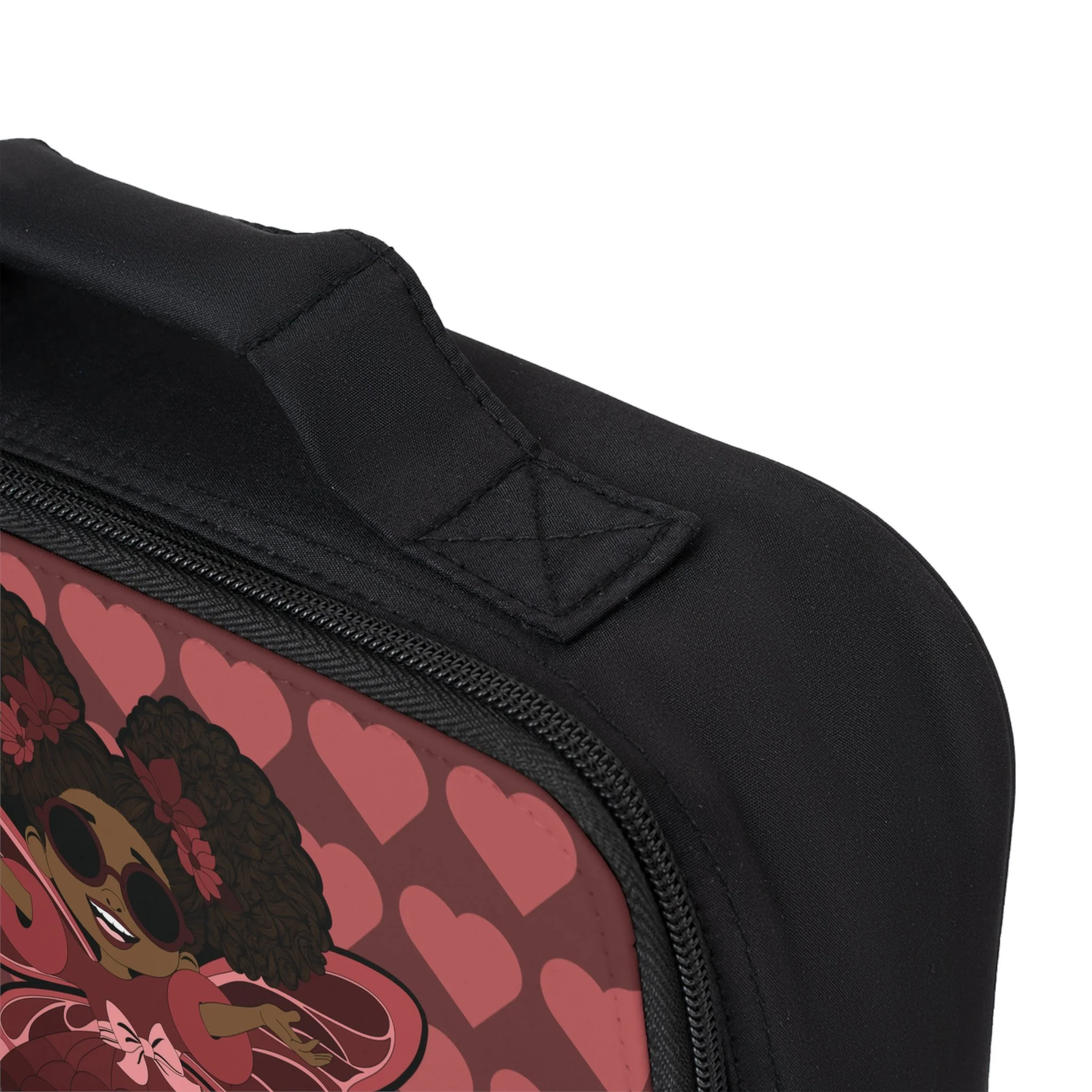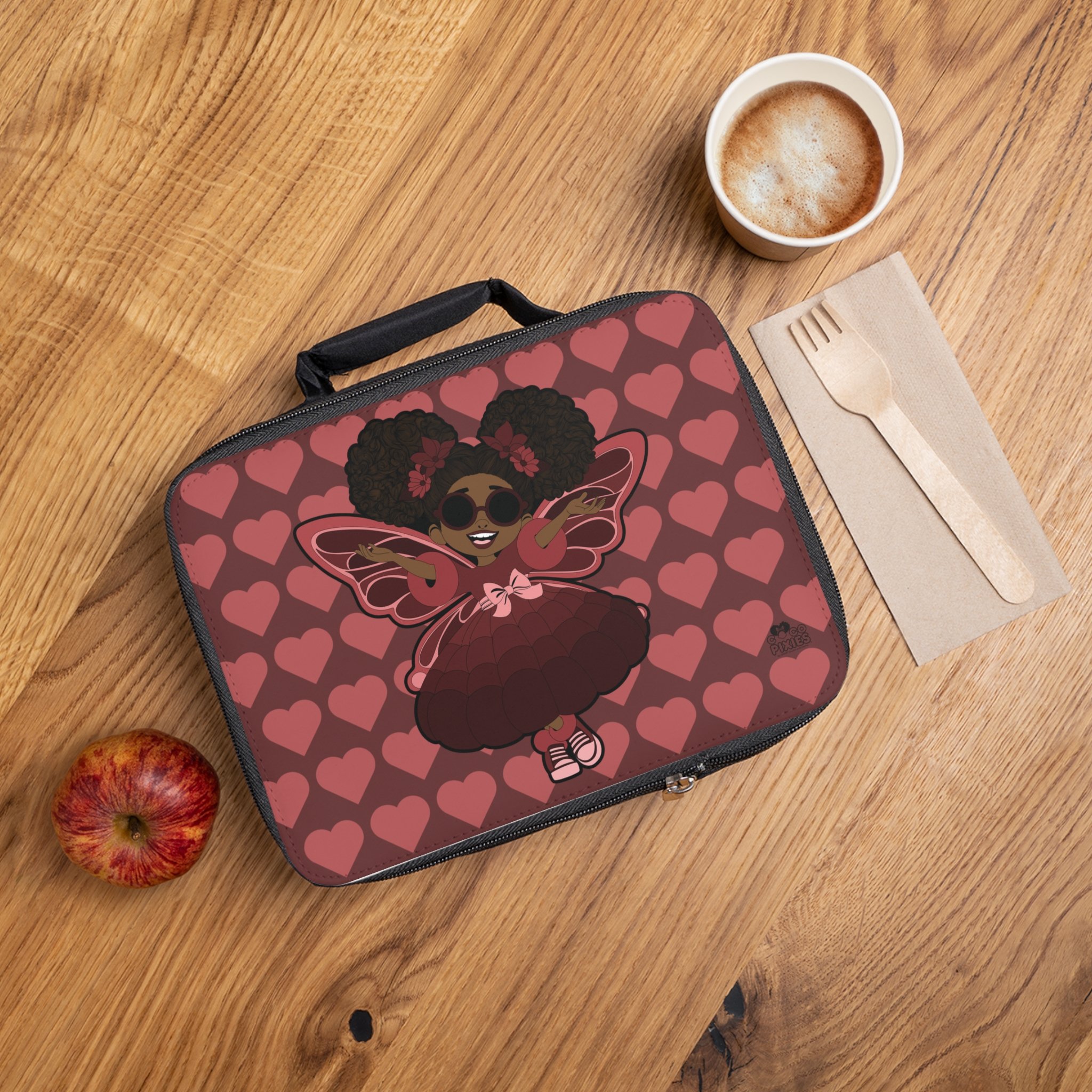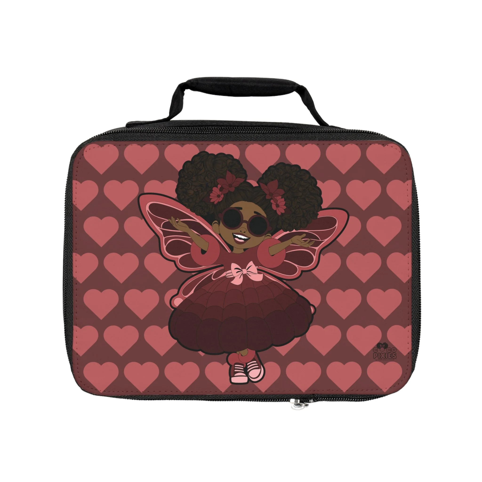 Radiant Ruby brings bold confidence and playful charm to this Coco Pixies lunch bag, turning an everyday essential into a statement piece. Wrapped in a rich ruby-toned heart pattern, this design features Radiant Ruby front and center with her signature afro puffs, stylish shades, fluttering pixie wings, and twirl-ready dress. The structured silhouette keeps snacks secure while the smooth zip closure and sturdy handle make it easy to grab and go—perfect for school days, adventures, or creative outings.