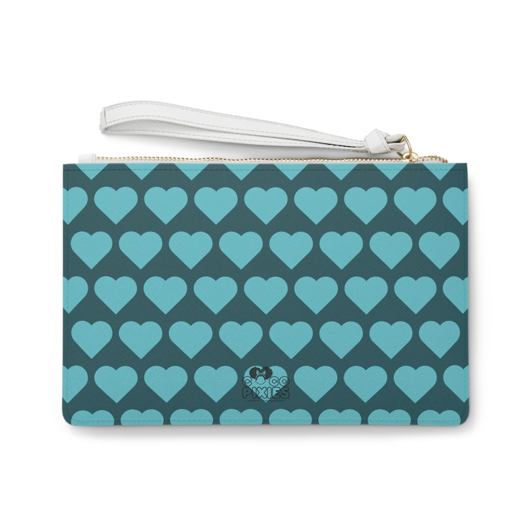Sassy Sammy Pixie Clutch Bag - Coco Pixies Deep Teal Signature Heart Pattern Wristlet With Zipper