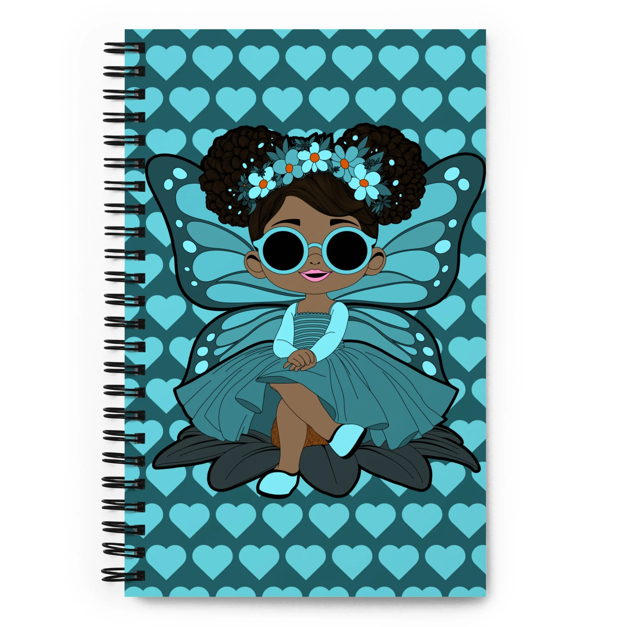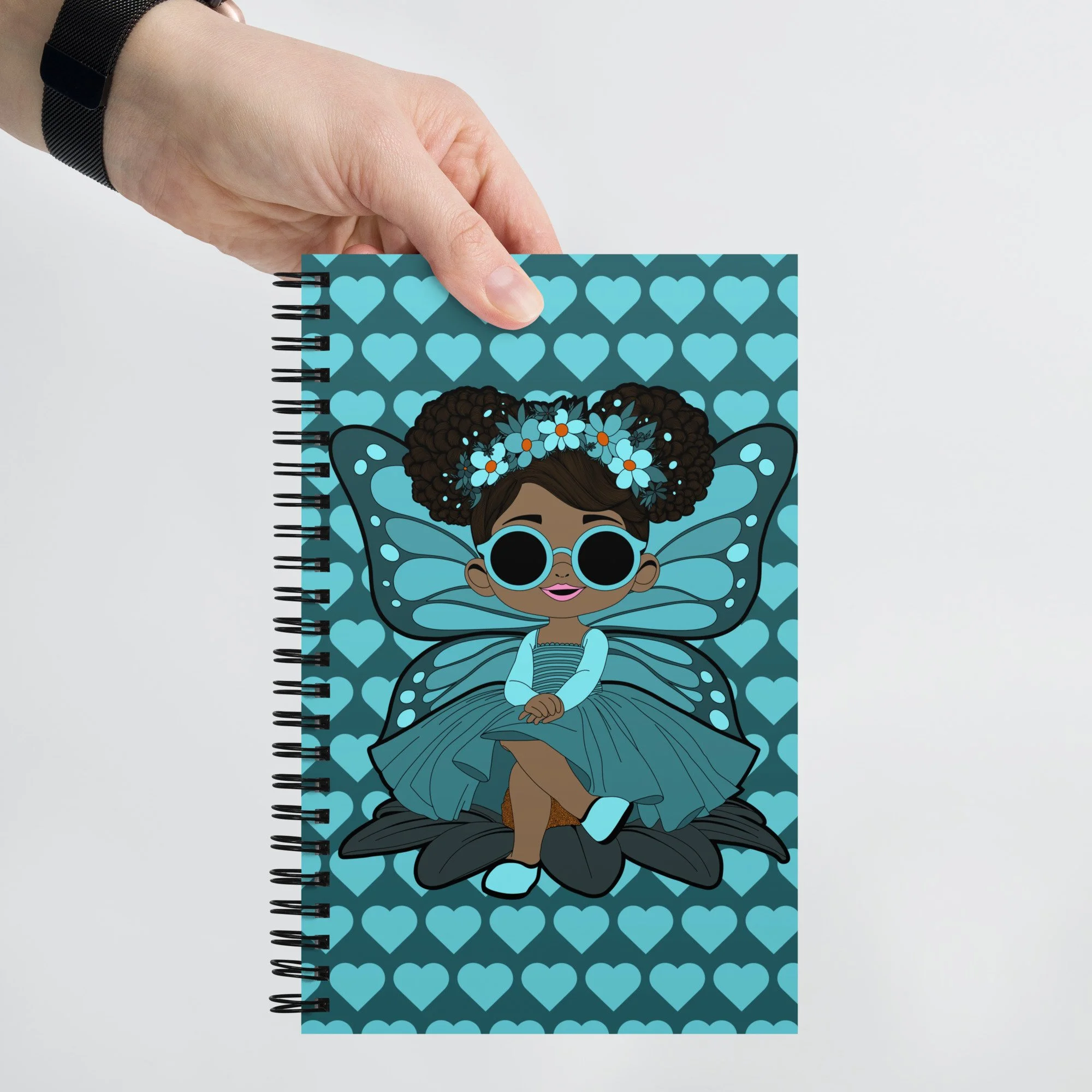 Sassy Sammy from Coco Pixies brings bold personality and cool confidence to every page of this standout notebook/journal. Framed by a striking teal heart pattern, Sammy sits poised in her flowing aqua dress, oversized round shades, and signature afro puffs crowned with blue florals. It’s playful, polished, and packed with attitude—just like the pixie herself.