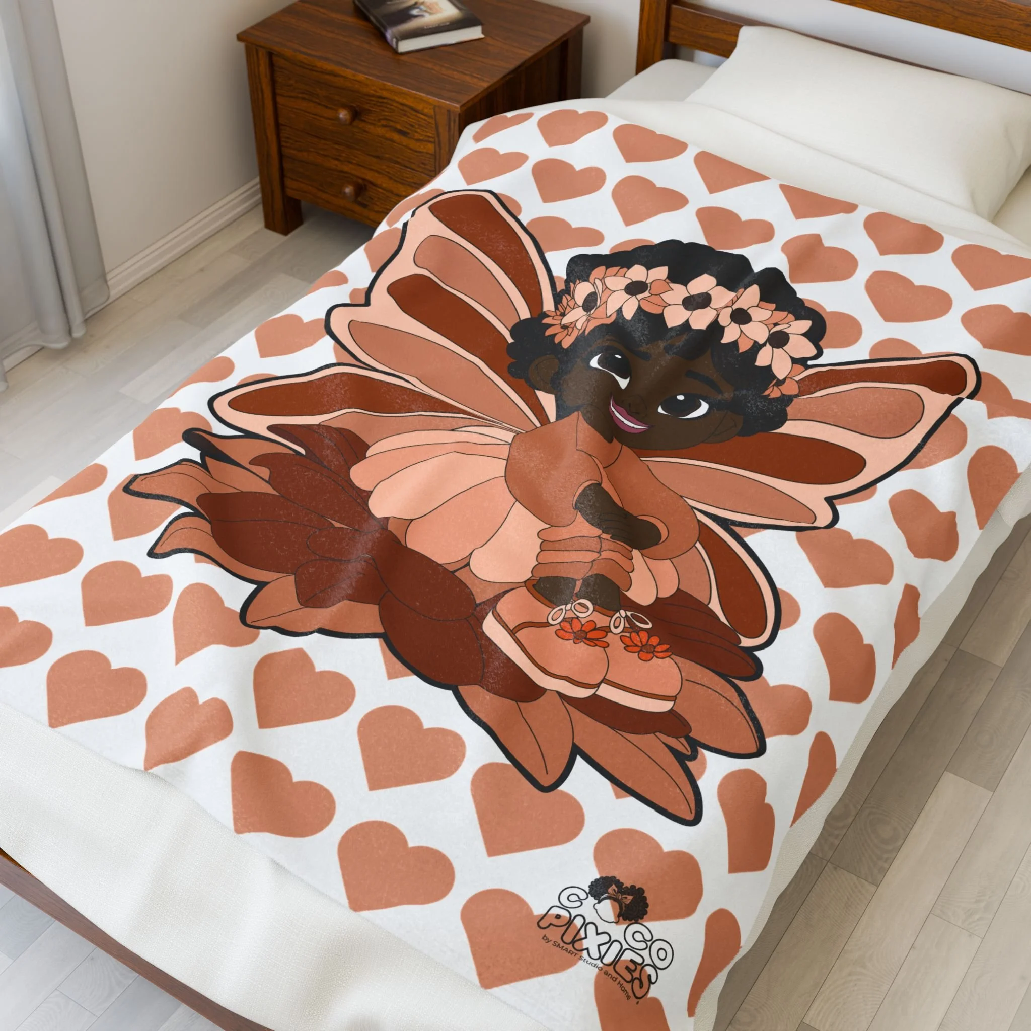Sweet Sienna Pixie Velveteen Plush Blanket - Coco Pixies Signature Heart Pattern Throw, 50" x 60"