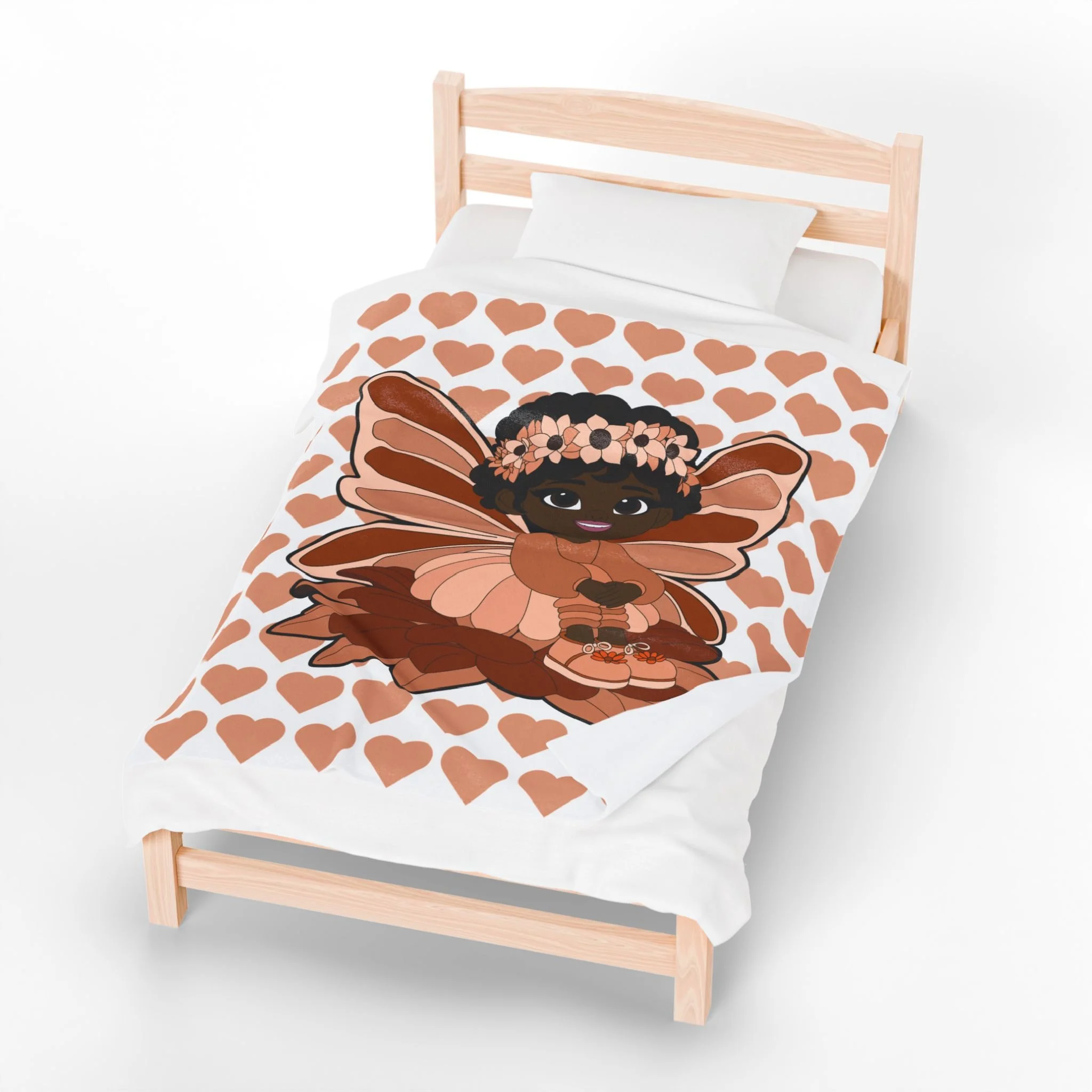 Made from ultra-soft velveteen fabric, this blanket is gentle on young skin while providing warmth perfect for bedtime, naptime, storytime, or cozy movie nights. The whimsical fairy design and warm, earthy tones make it a beautiful accent for a child’s bedroom, playroom, or reading nook.