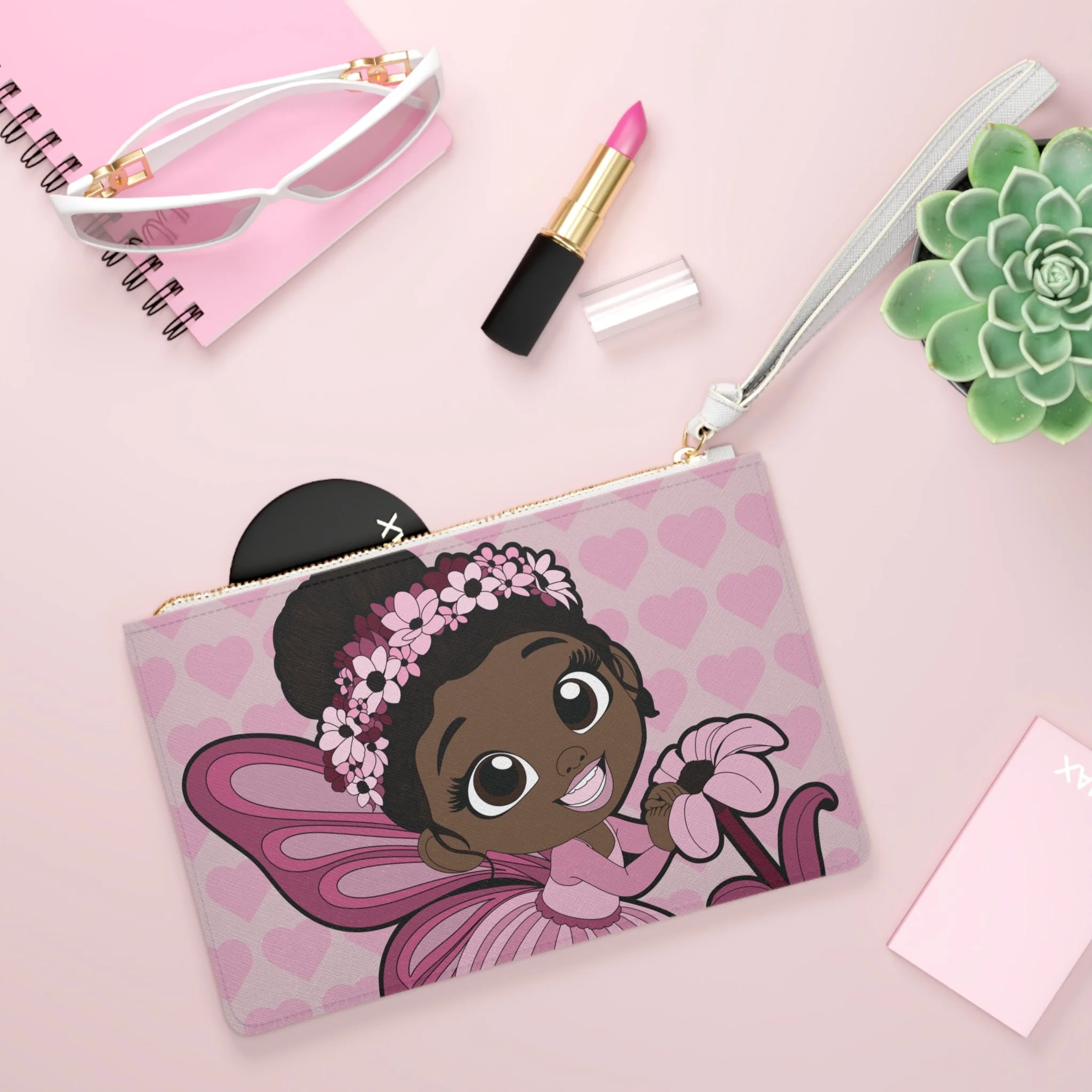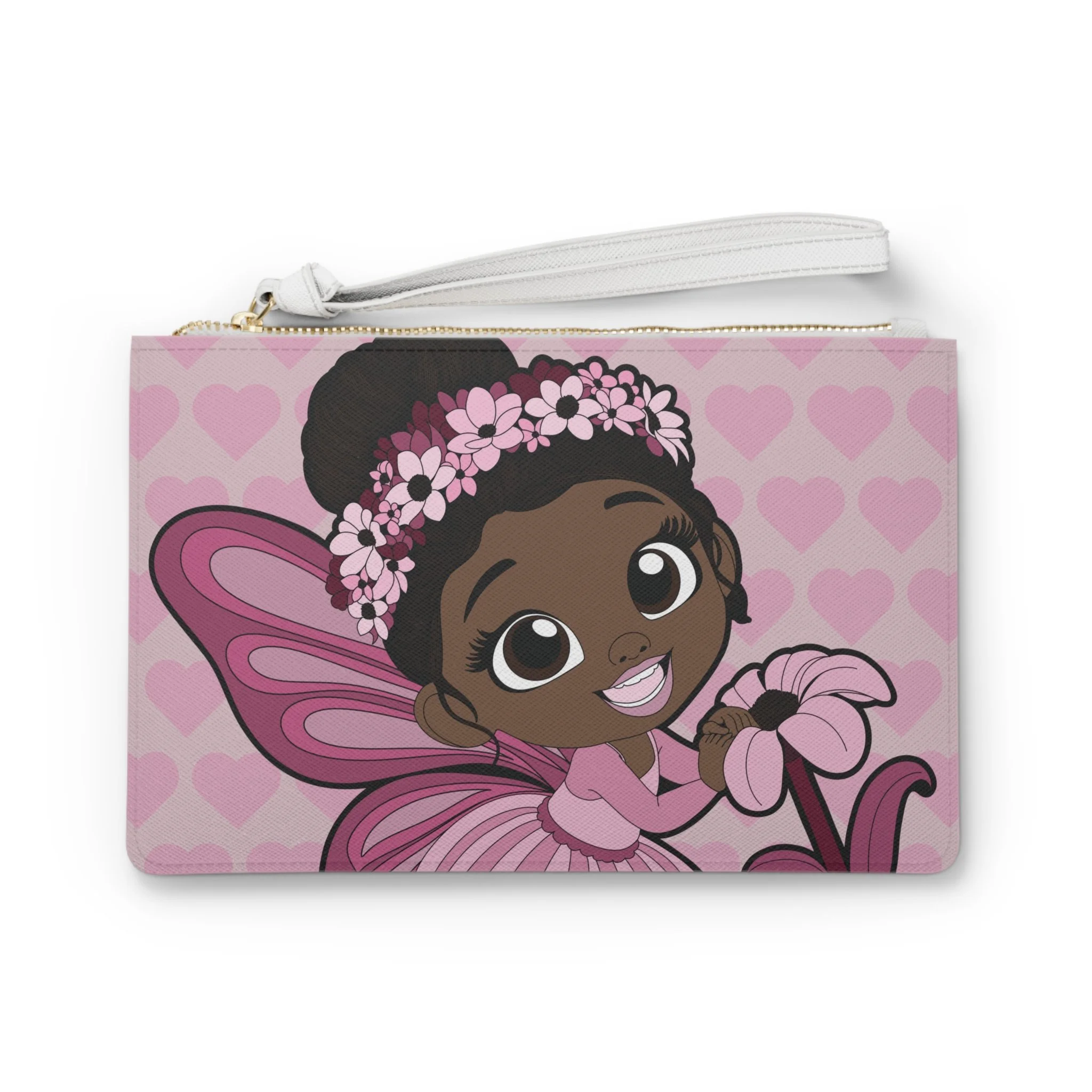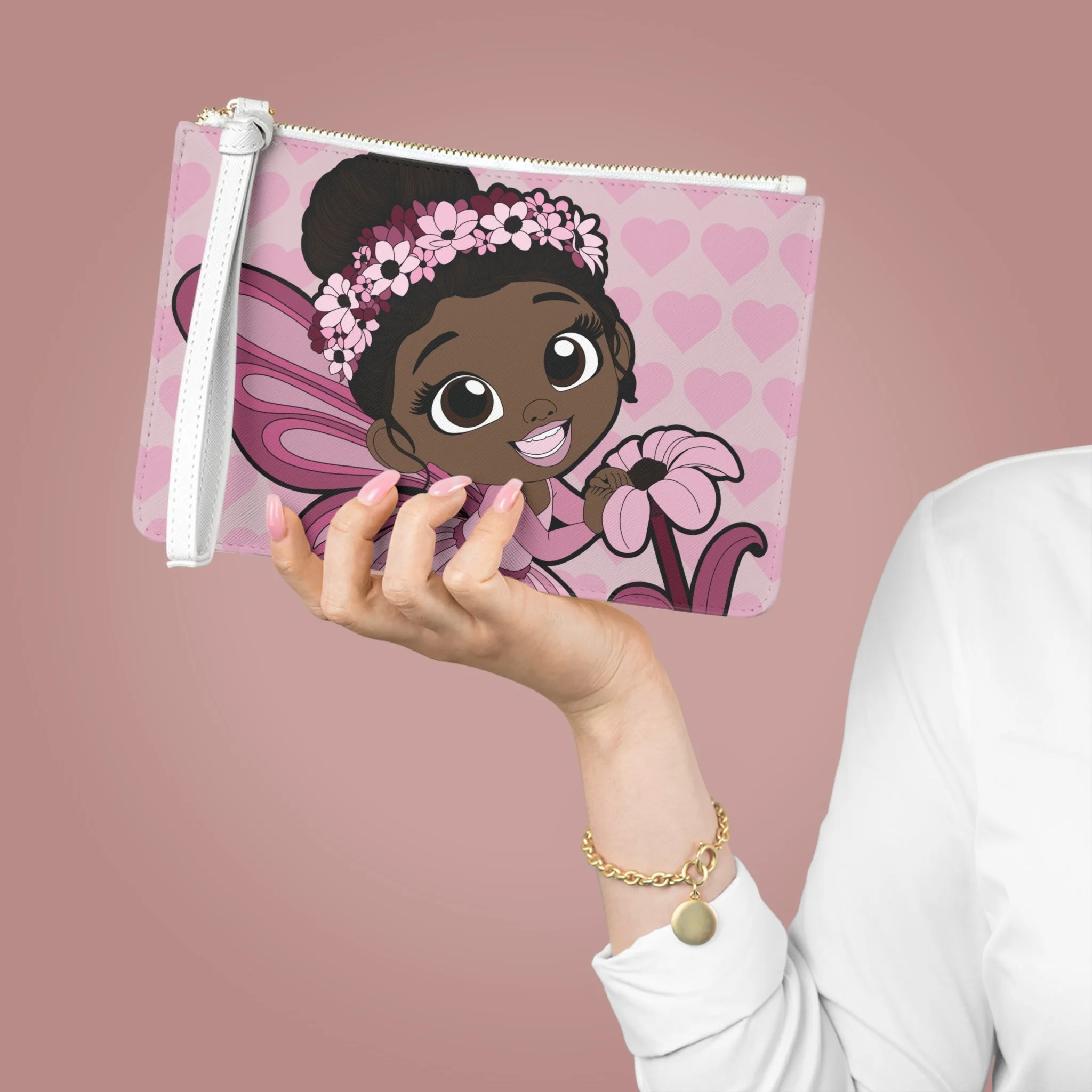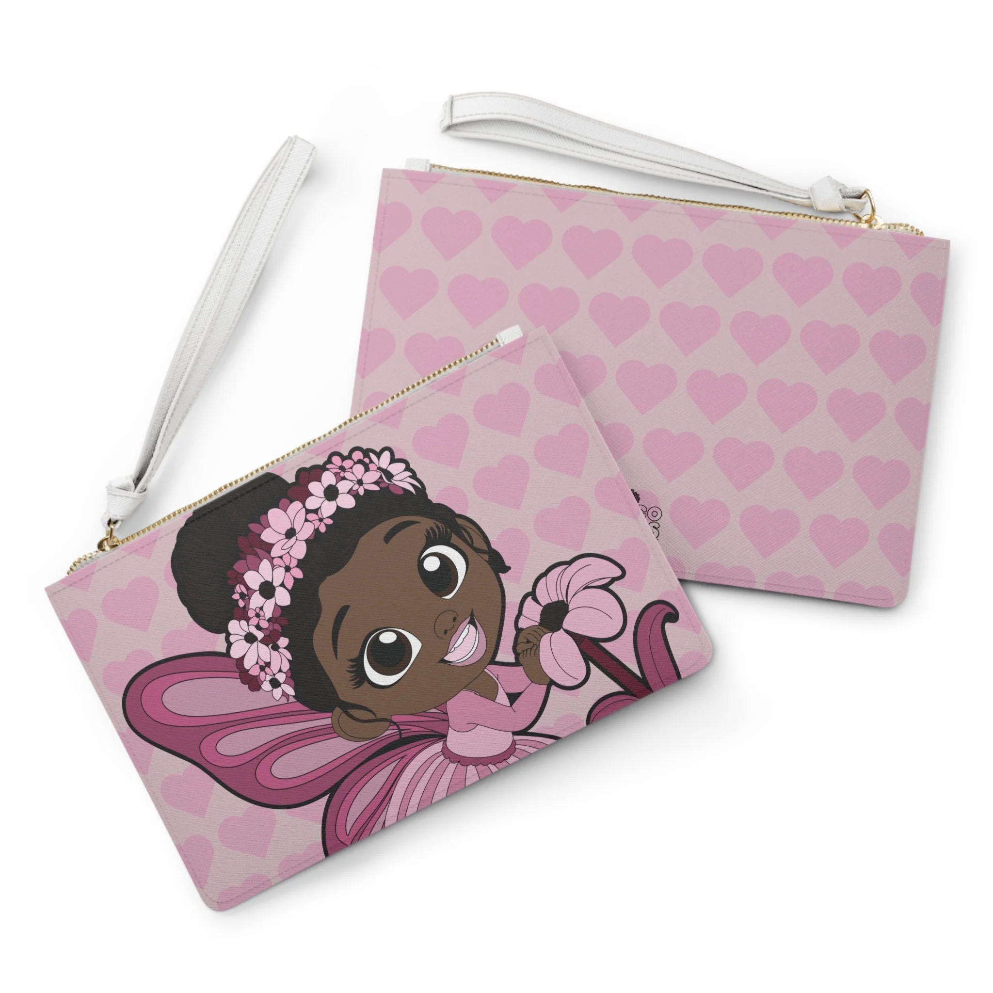 The Tara Twinkle Clutch Bag from the Coco Pixies collection is a sweet statement piece designed to shine wherever it goes. Featuring Tara Twinkle’s bright smile, soft pink wings, floral crown, and signature heart pattern background, this clutch blends playful pixie charm with everyday function. Finished with a zip closure and wristlet strap, it’s perfect for carrying small essentials in style.