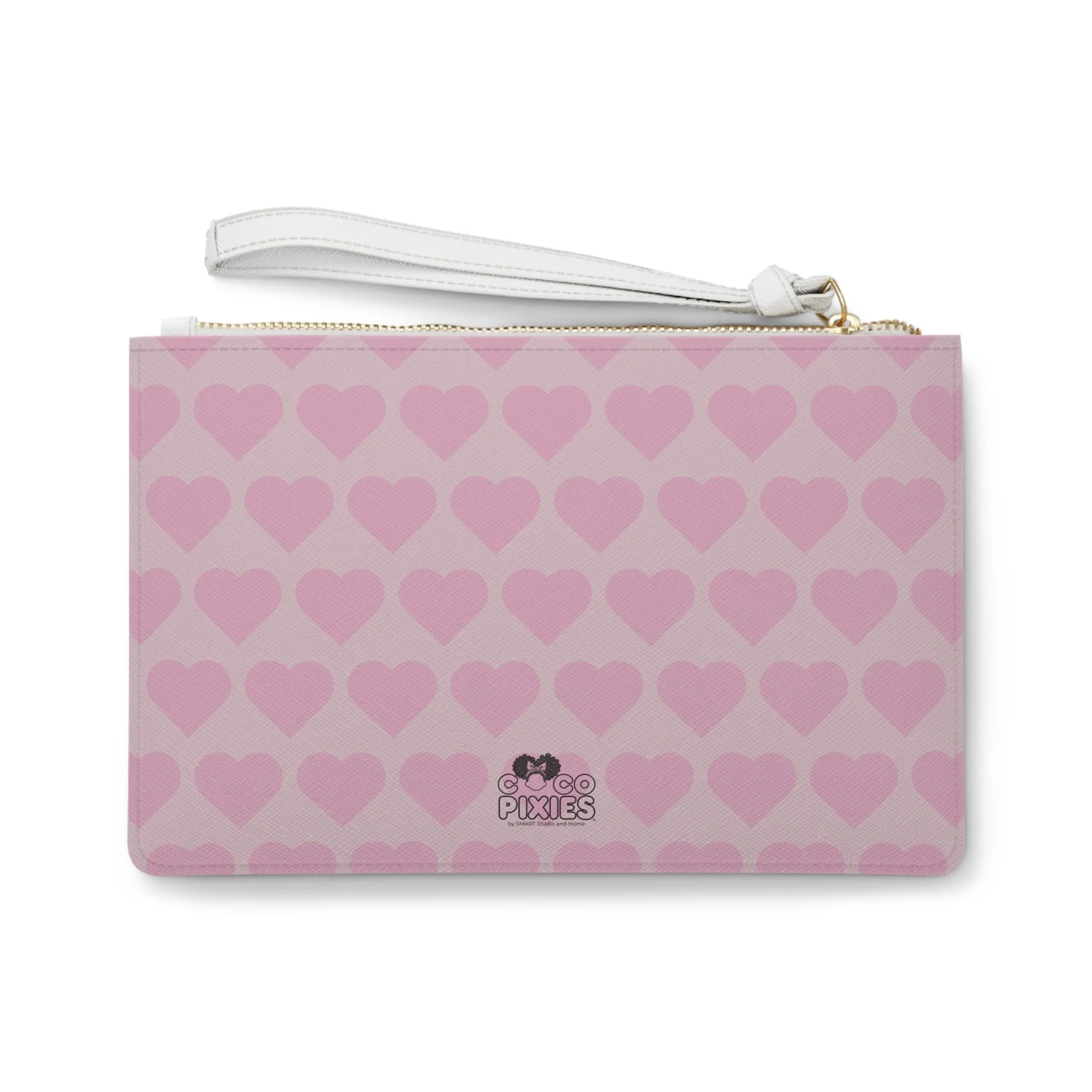 Tara Twinkle Pixie Clutch Bag - Coco Pixies Blush Pink Signature Heart Pattern Wristlet With Zipper