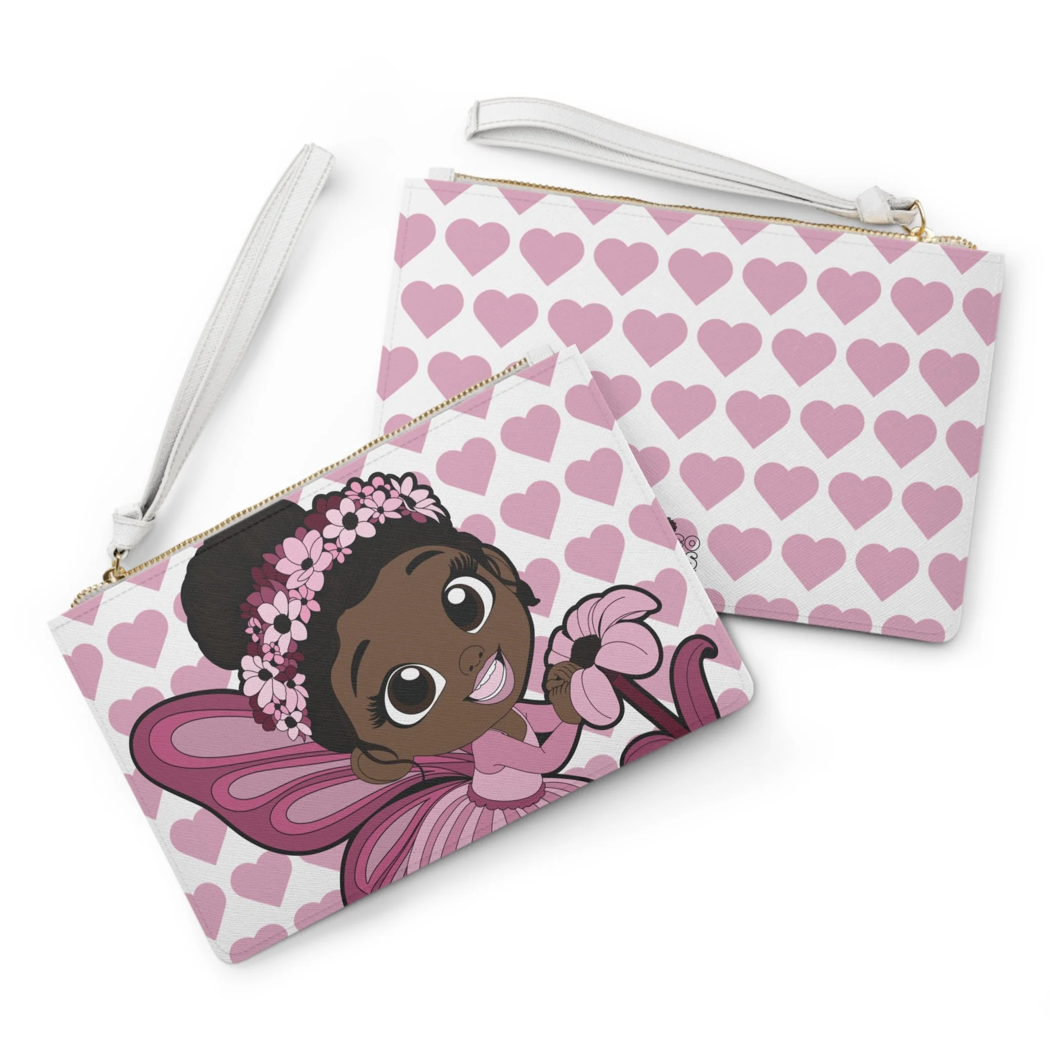 The Tara Twinkle Clutch Bag from the Coco Pixies collection is a sweet-meets-stylish accessory bursting with personality. Showcasing Tara Twinkle’s wide-eyed smile, soft pink wings, floral crown, and signature heart-pattern backdrop, this clutch captures confident pixie charm in a compact, carry-anywhere design. Finished with a secure zip closure and wristlet strap, it’s as practical as it is eye-catching.