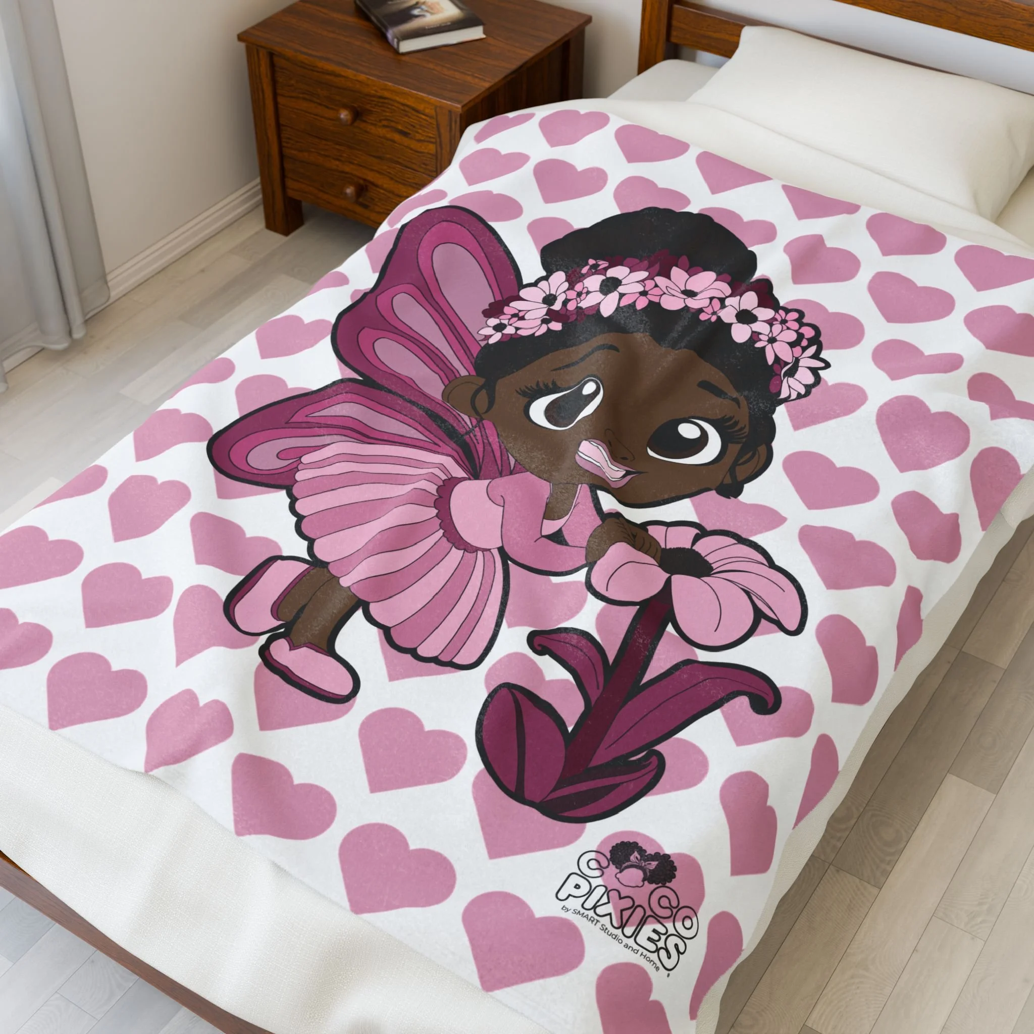 Tara Twinkle Pixie Velveteen Plush Blanket - Coco Pixies Signature Heart Pattern Throw, 50" x 60"