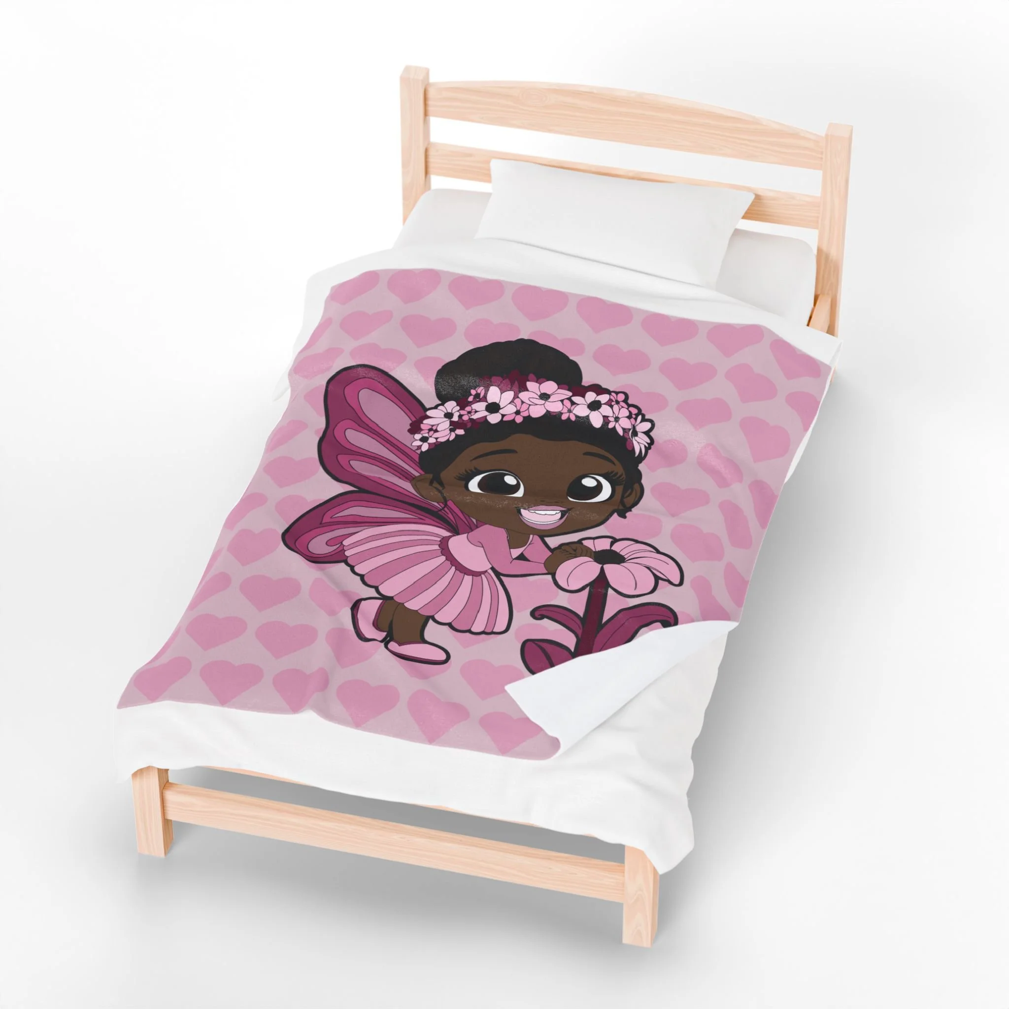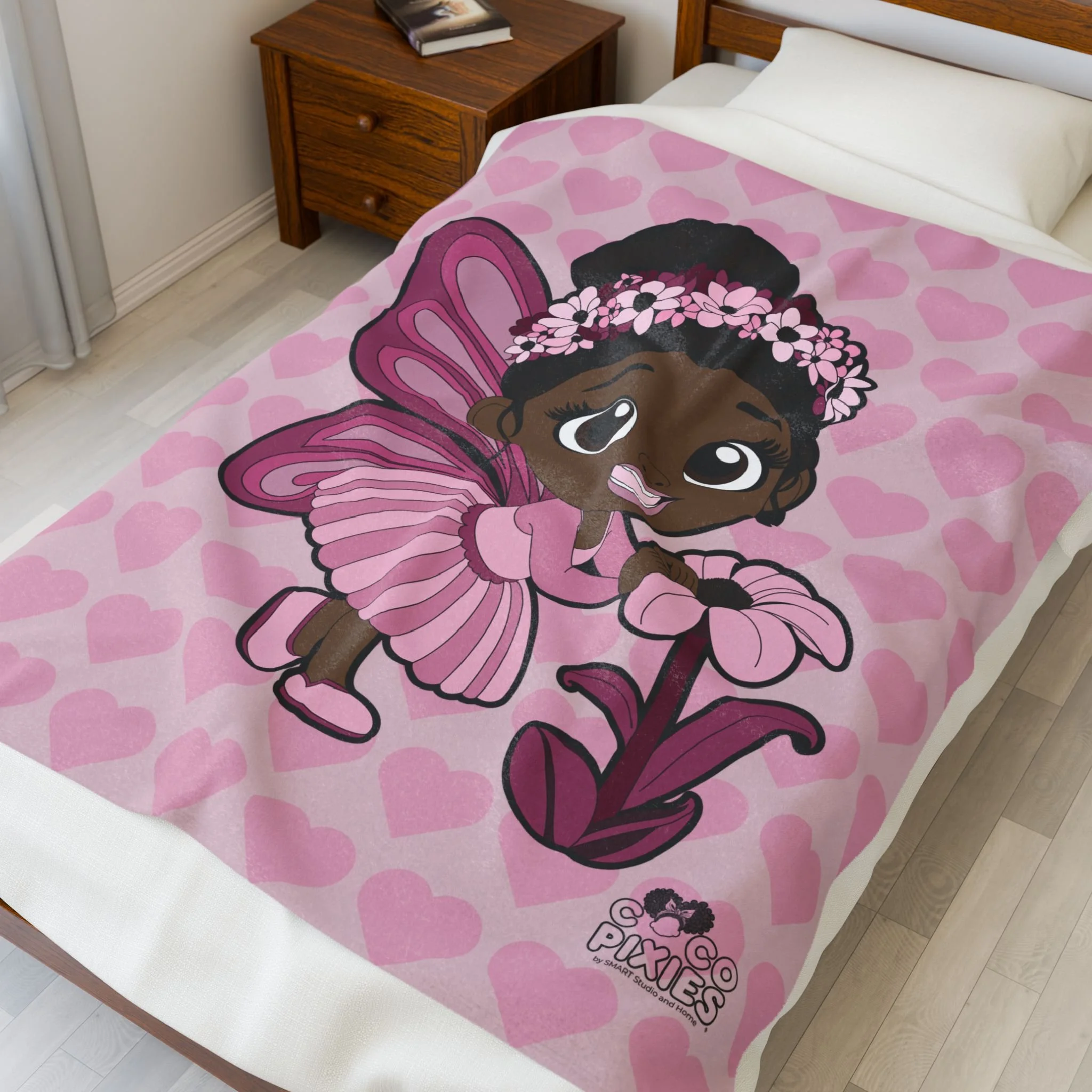 Tara Twinkle Pixie Velveteen Plush Blanket - Coco Pixies Blush Pink Signature Heart Pattern Throw, 50" x 60"