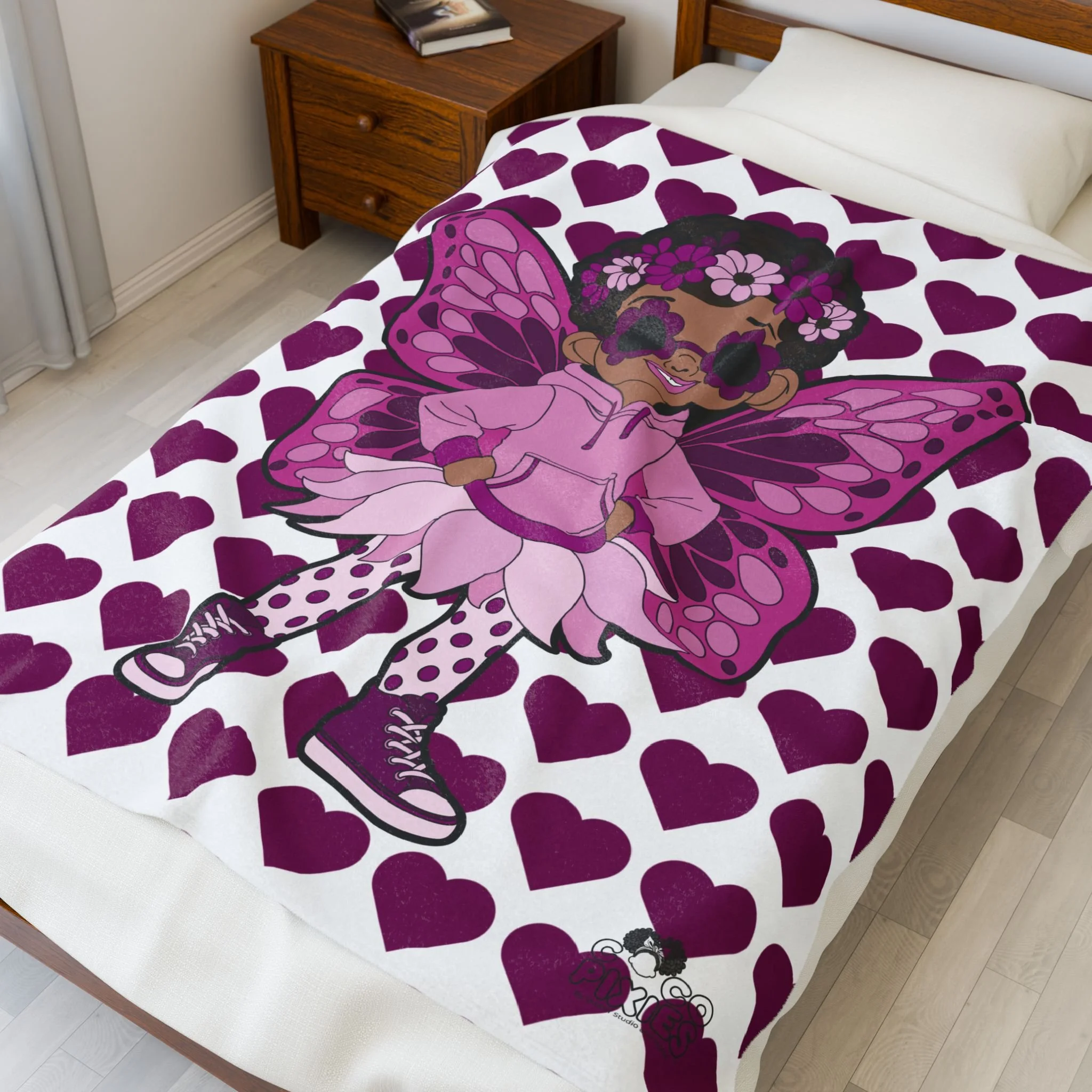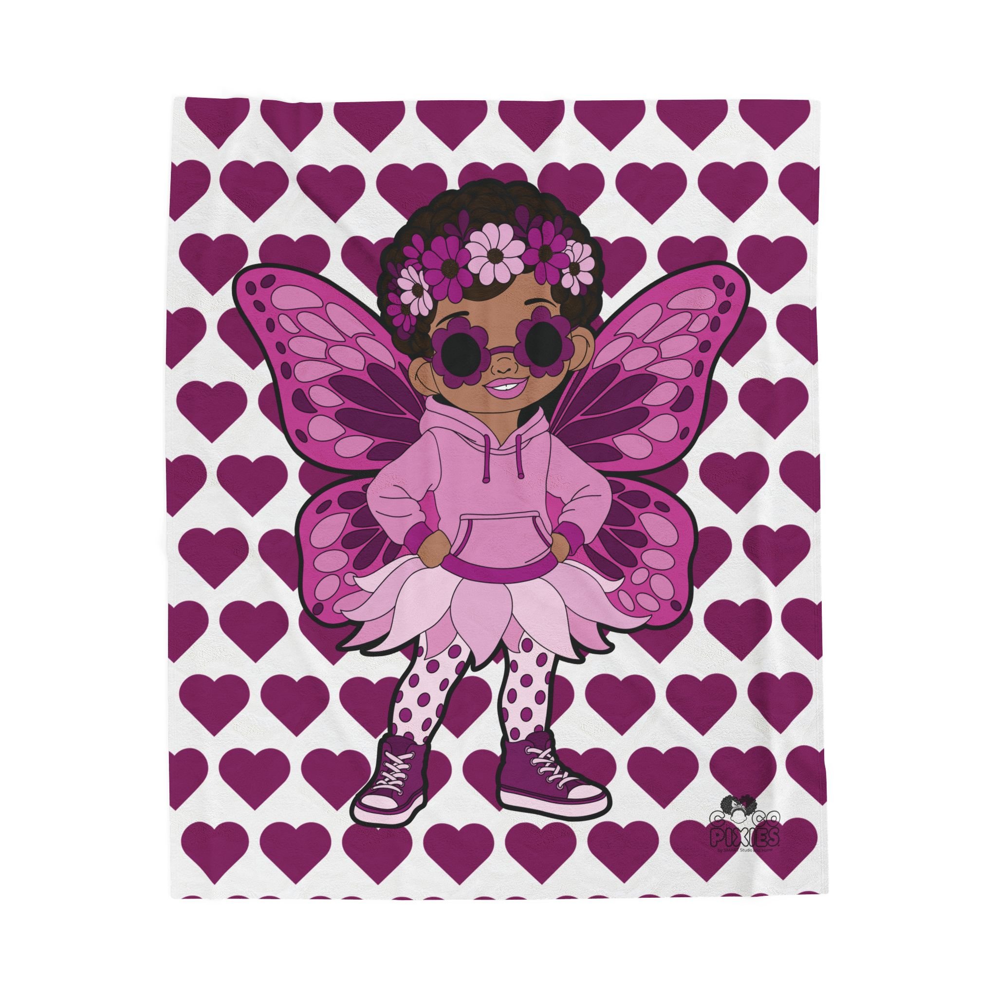 Teonna Twinklepuff Pixie Velveteen Plush Blanket - Coco Pixies Signature Heart Pattern Throw, 50" x 60"